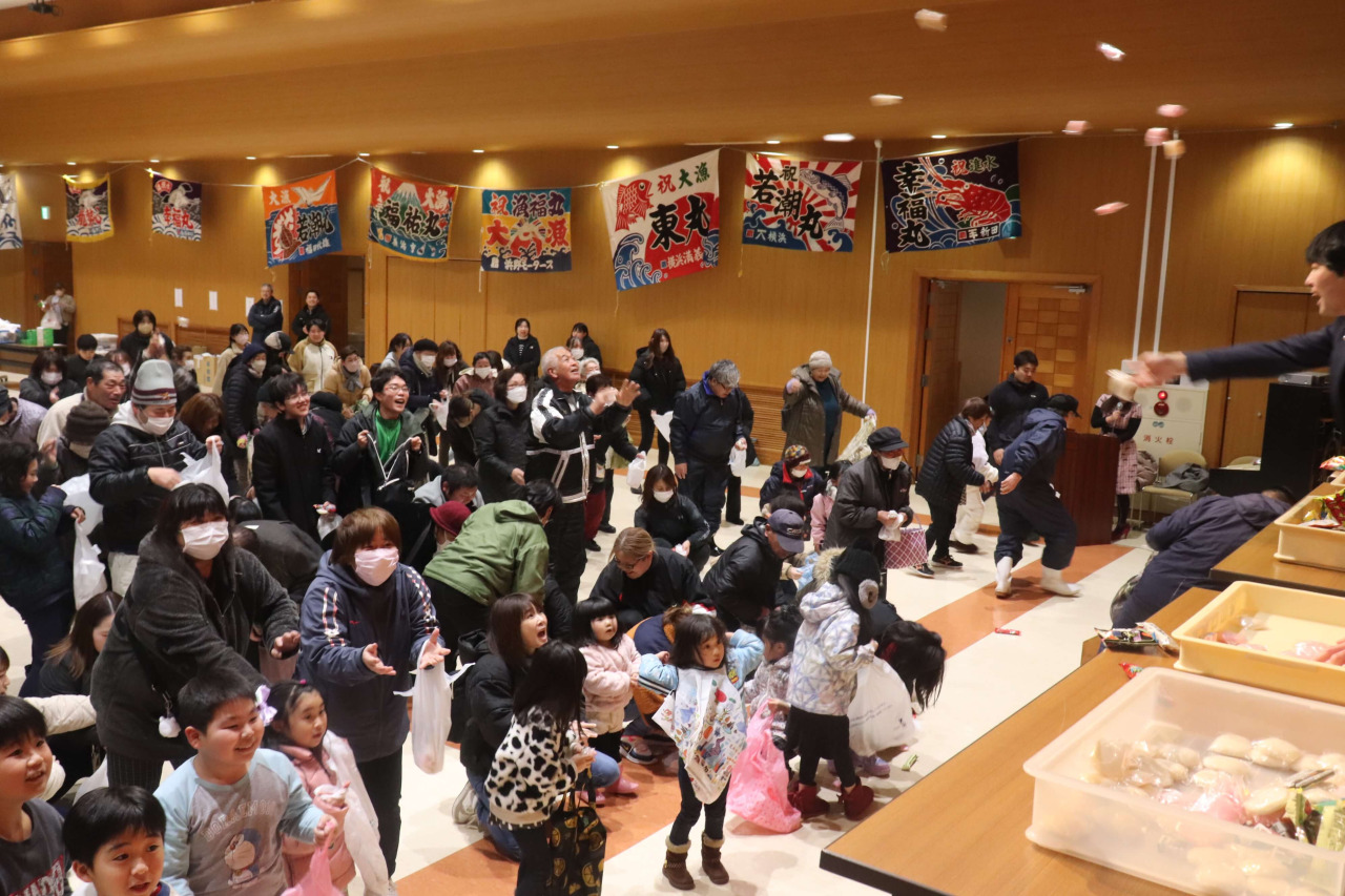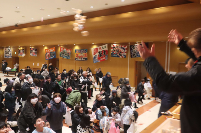 会場では、お笑いライブやじゃんけん大会、餅まきなどのステージイベントも開催され、