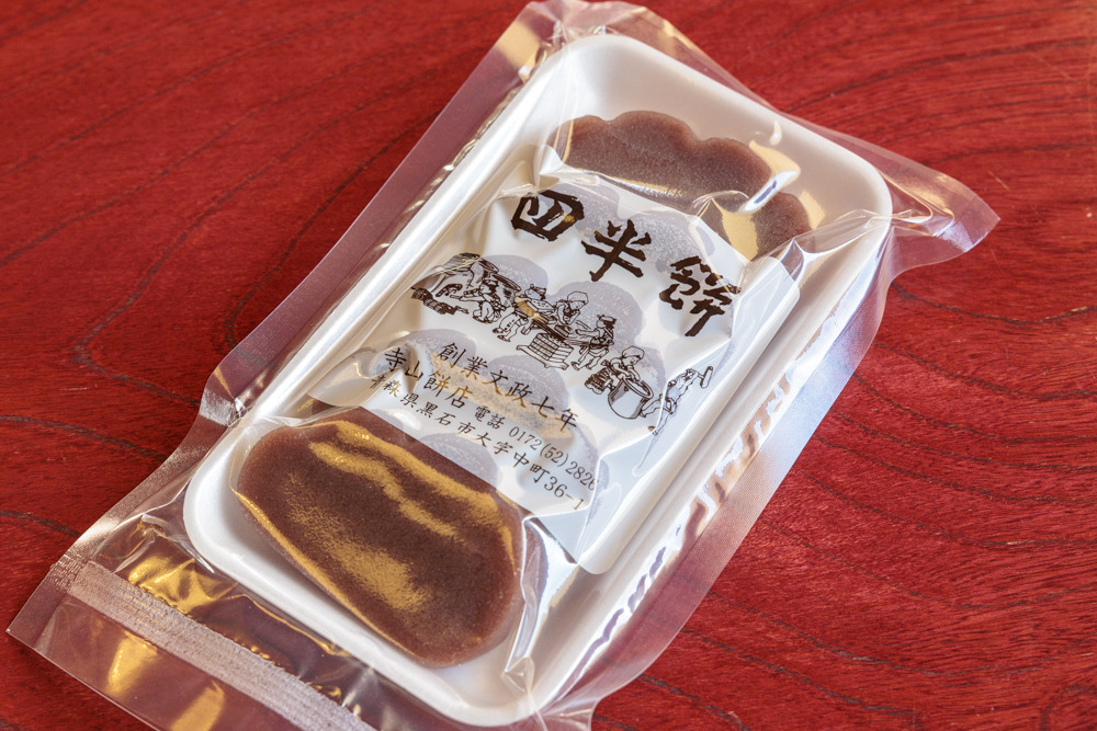 こみせ通り中央にある「寺山餅店」は、1824年から200年続く老舗餅店。江戸時代からの伝統的な手法で作る「四半餅(しはもち)」は人気商品で、甘すぎない素朴な味わいが魅力です。