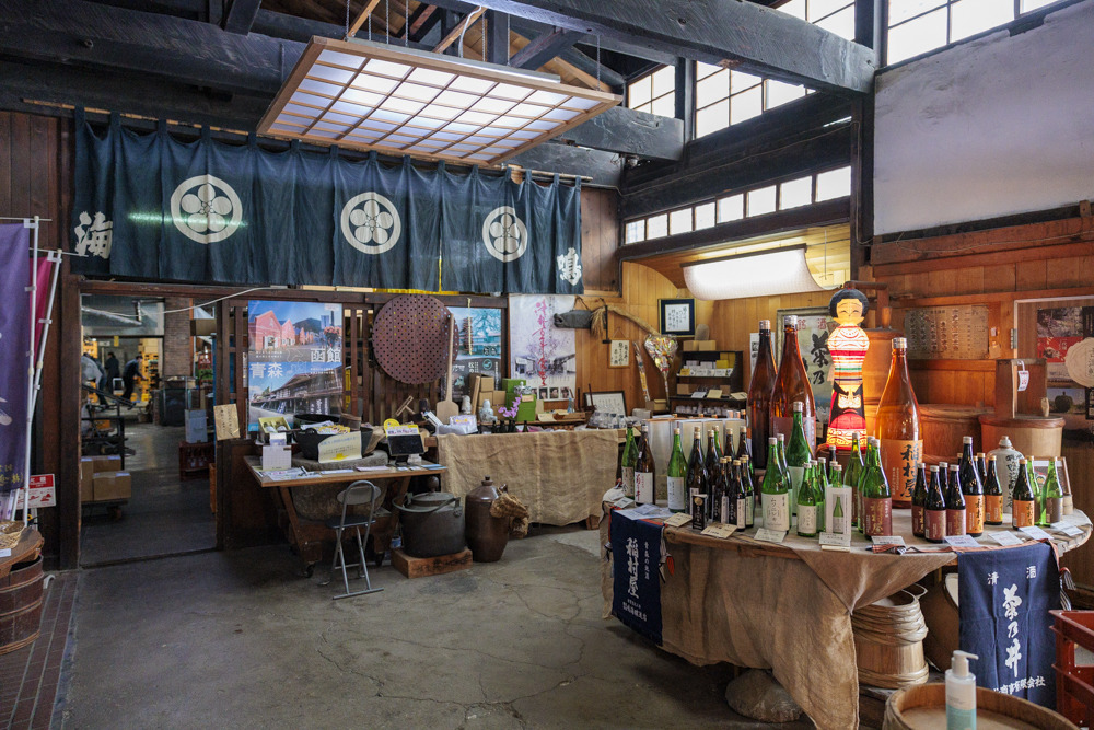 「鳴海醸造店」は、1803年から続く造り酒屋。地酒「菊乃井」「稲村屋」をはじめ、青森県の原料にこだわって丁寧に作られた日本酒をその場で購入できます。黒石市の寿司専米「ムツニシキ」を使用して作られたお酒など、なかなか出回らない日本酒もあり、日本酒好きにはたまりません。