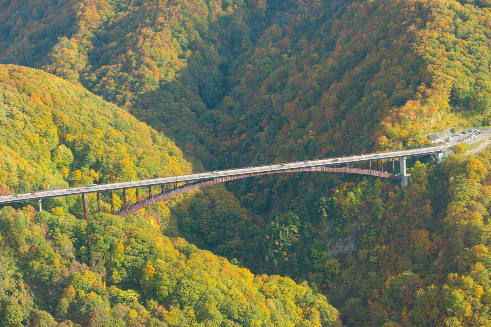 「十和田八幡平国立公園」内にある城ヶ倉大橋は、全長360mの東北最大級のアーチ橋です。