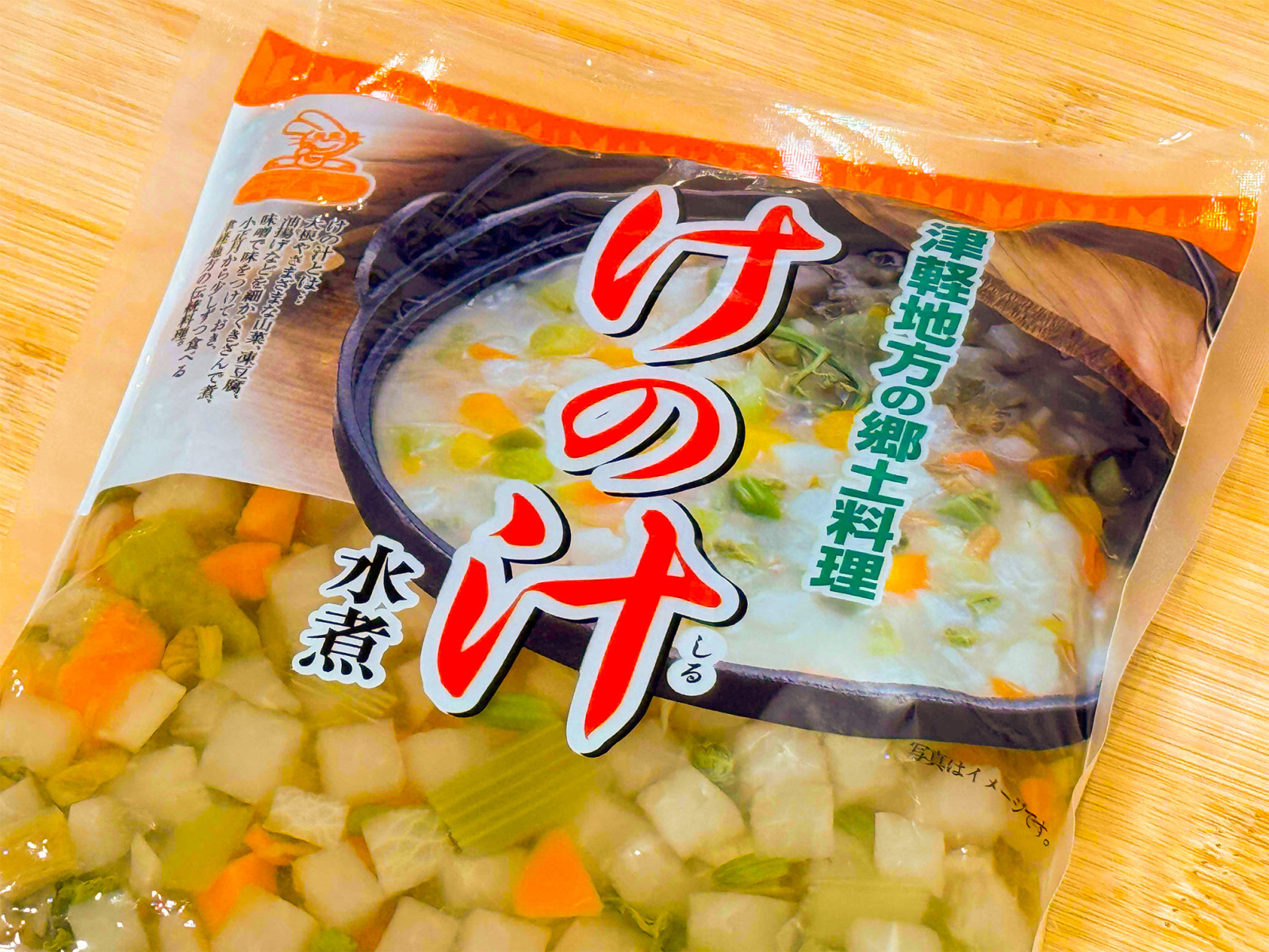 津軽地方では「粥(かゆ)」を「け」と呼ぶことから、「かゆの汁」が転じて「けの汁」になったとのこと。