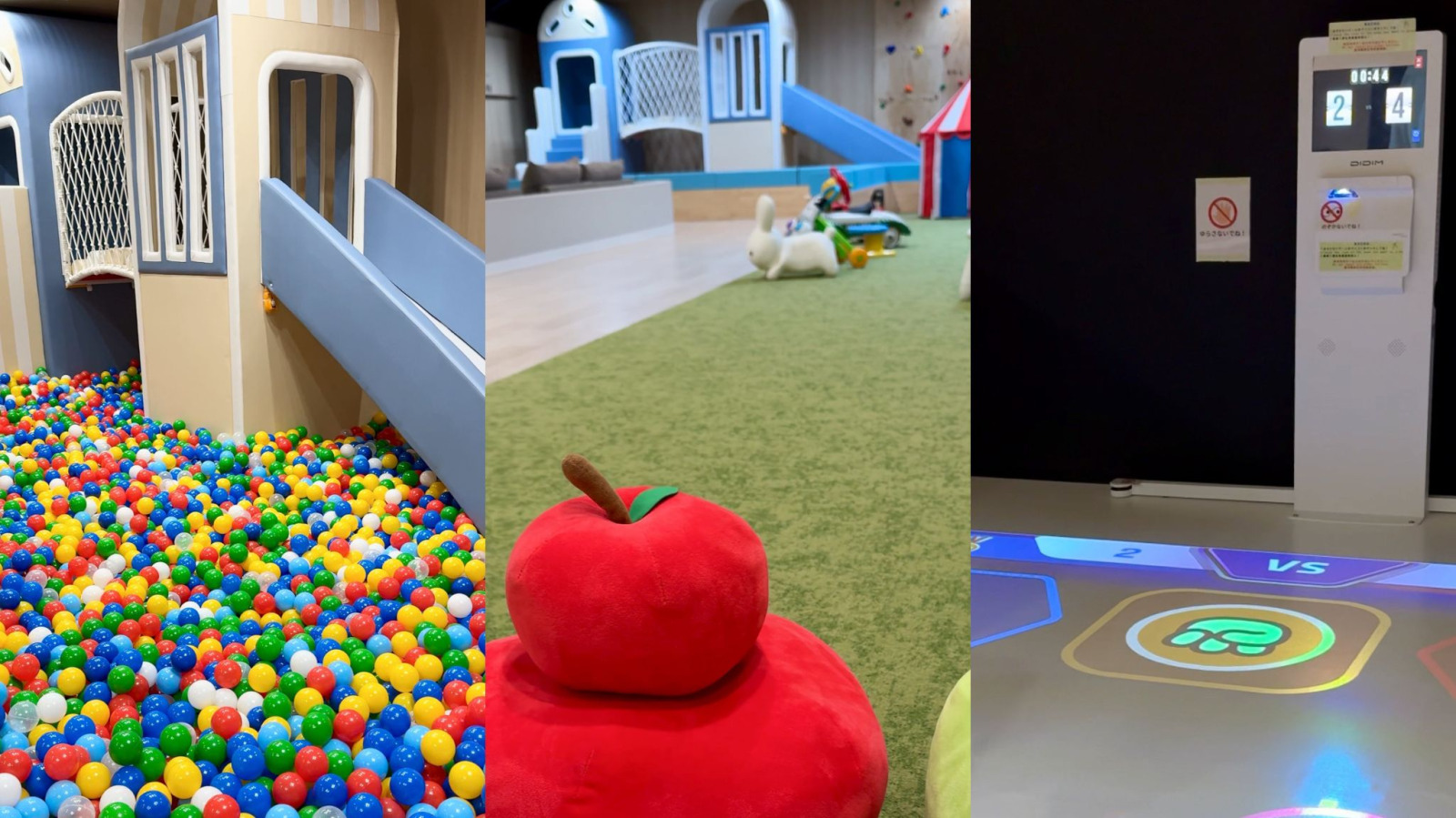約100坪もの広々としたスペースでこどもたちも存分に遊びまわることができ、退屈知らず。青森県初導入の AR 式ゲーム機もあるので大人もこどもも楽しめます。