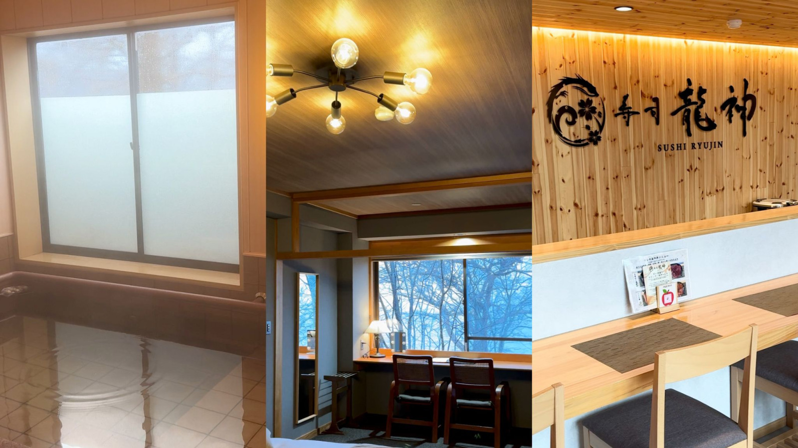併設のお寿司屋さん「龍神」で昼食と夕食をいただくことができる点も便利です。