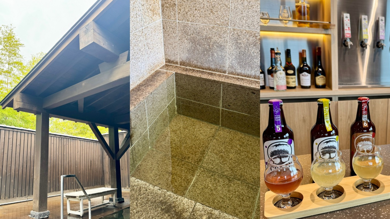 露天風呂にサウナ、岩盤浴など充実した大浴場が人気なのに加え、2025年9月から家族風呂に宿泊できるようになっています。特徴はシードル工場を併設していること!
