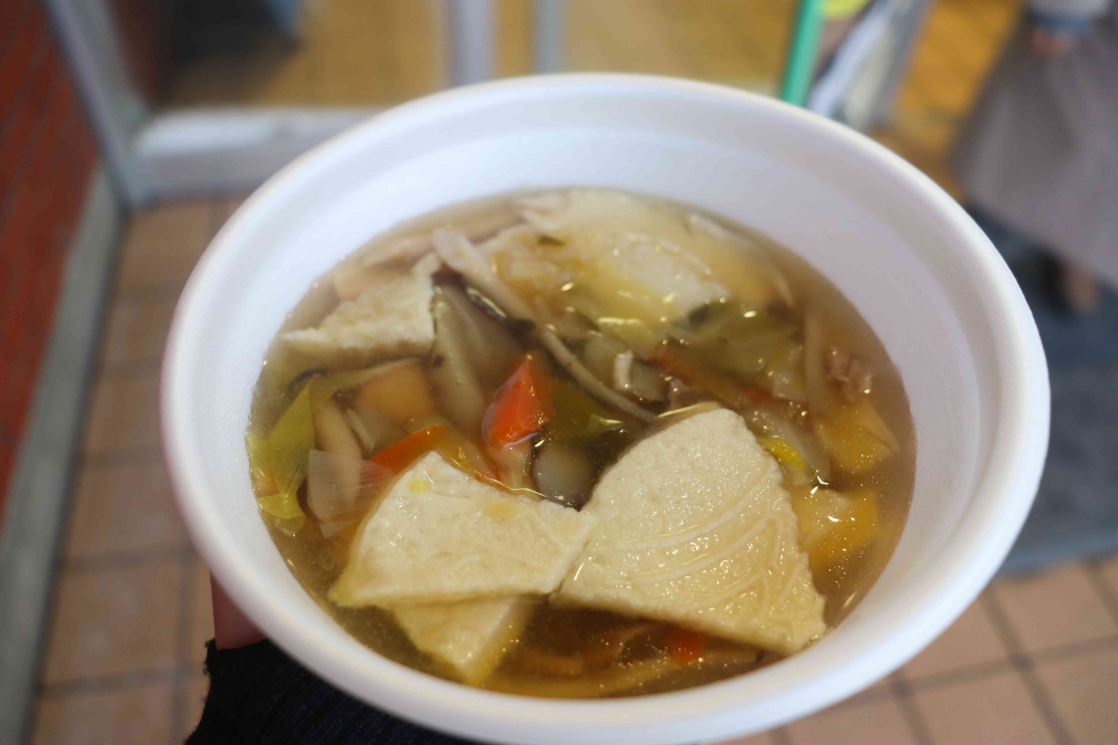きのこやにんじん、ネギなど具材もたっぷりで、ほどよい「しょっぱさ」とダシの旨みが冷えた体に染み渡ります。