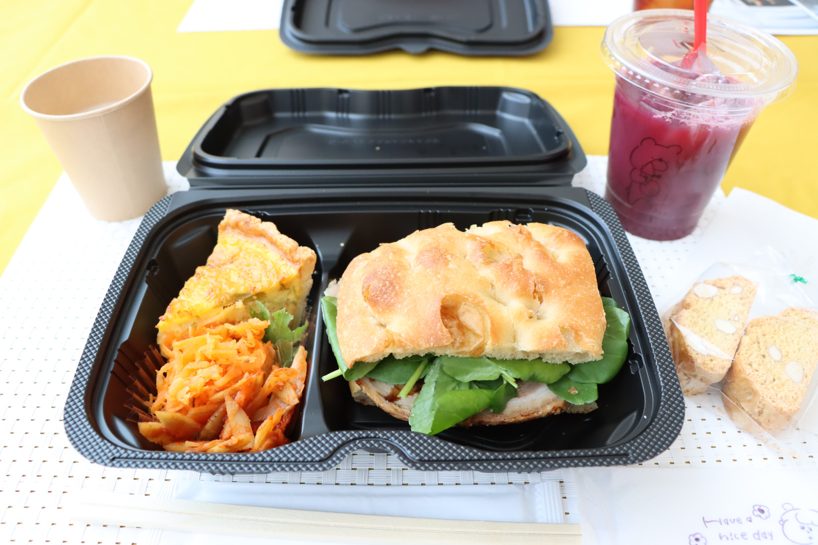 ランチボックスとともにいただいたドリンク引換券は、カフェのドリンクメニューであればどれでも交換可能。