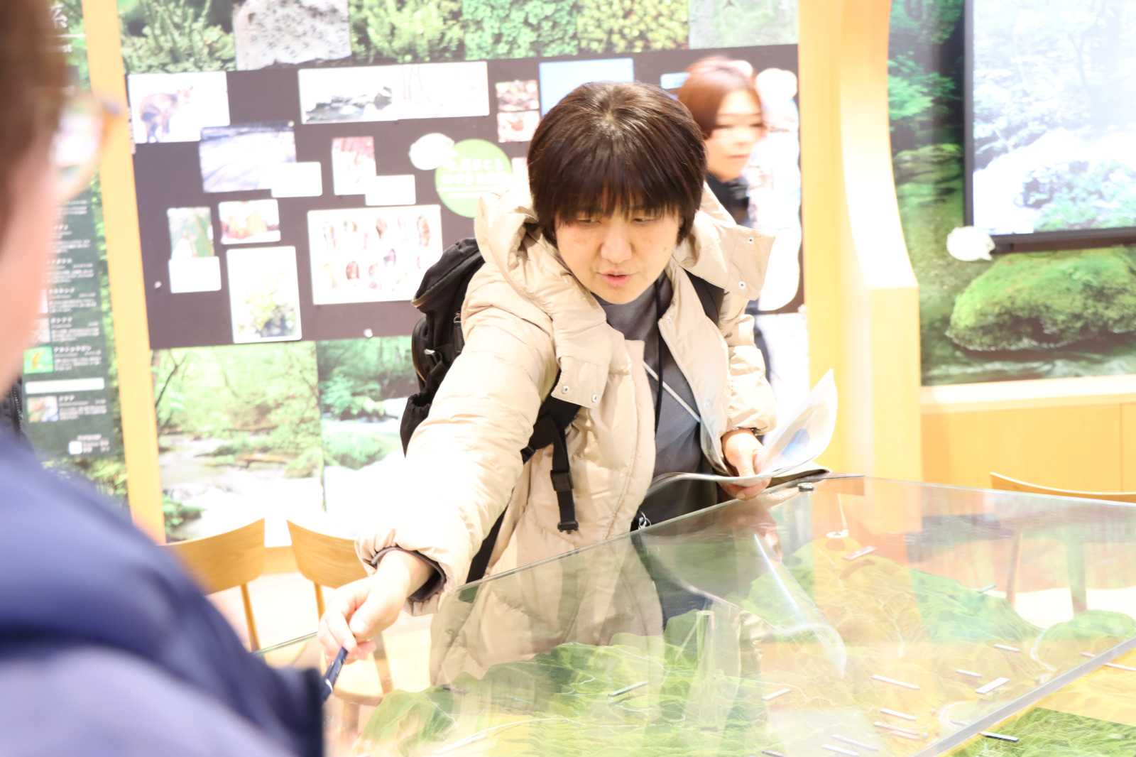 ガイド冊子とは別に、説明に合わせて大きな表示も見せてくれるので、車酔いしやすい人でも安心です。