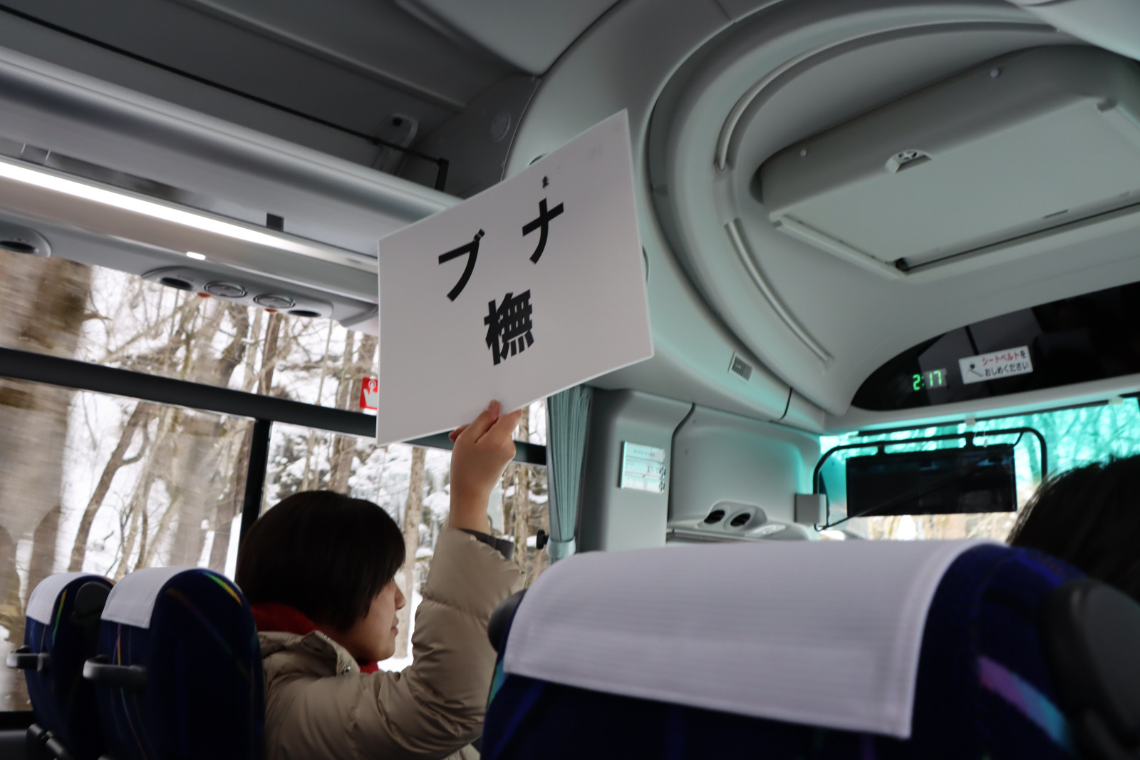 バスの中では、美術館館長の四方氏のほか、サポートガイドの中村あずみ氏の解説があり、道中も奥入瀬渓流への理解を深めることができます。