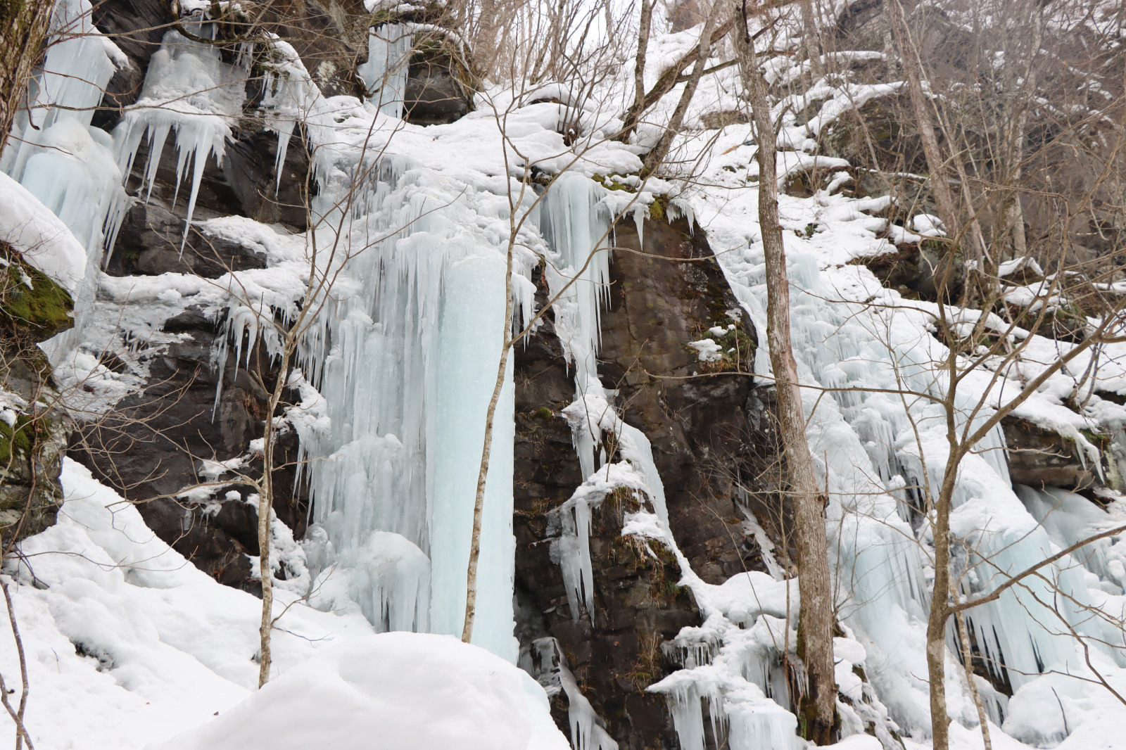 バスから降りるとすぐ、目の前に氷瀑がひろがります。