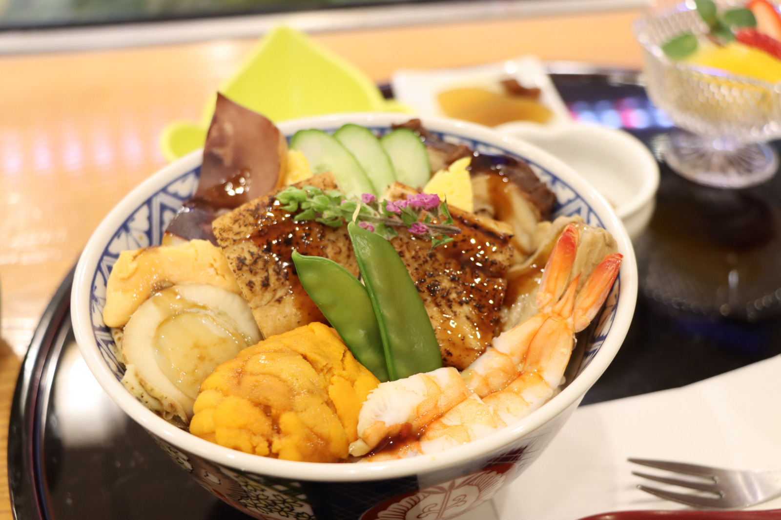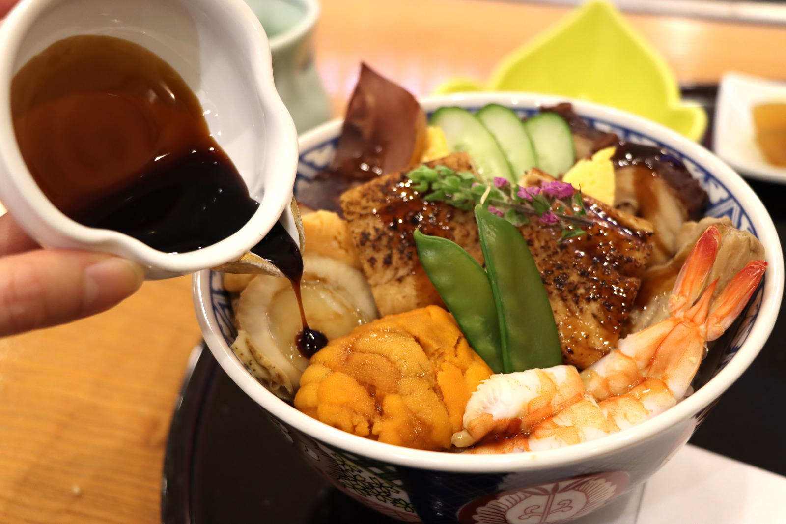 「煮つめ」とは、穴子にぬるタレのこと。そのタレで火を通して味付けをしたのが「煮つめ海鮮丼」です。