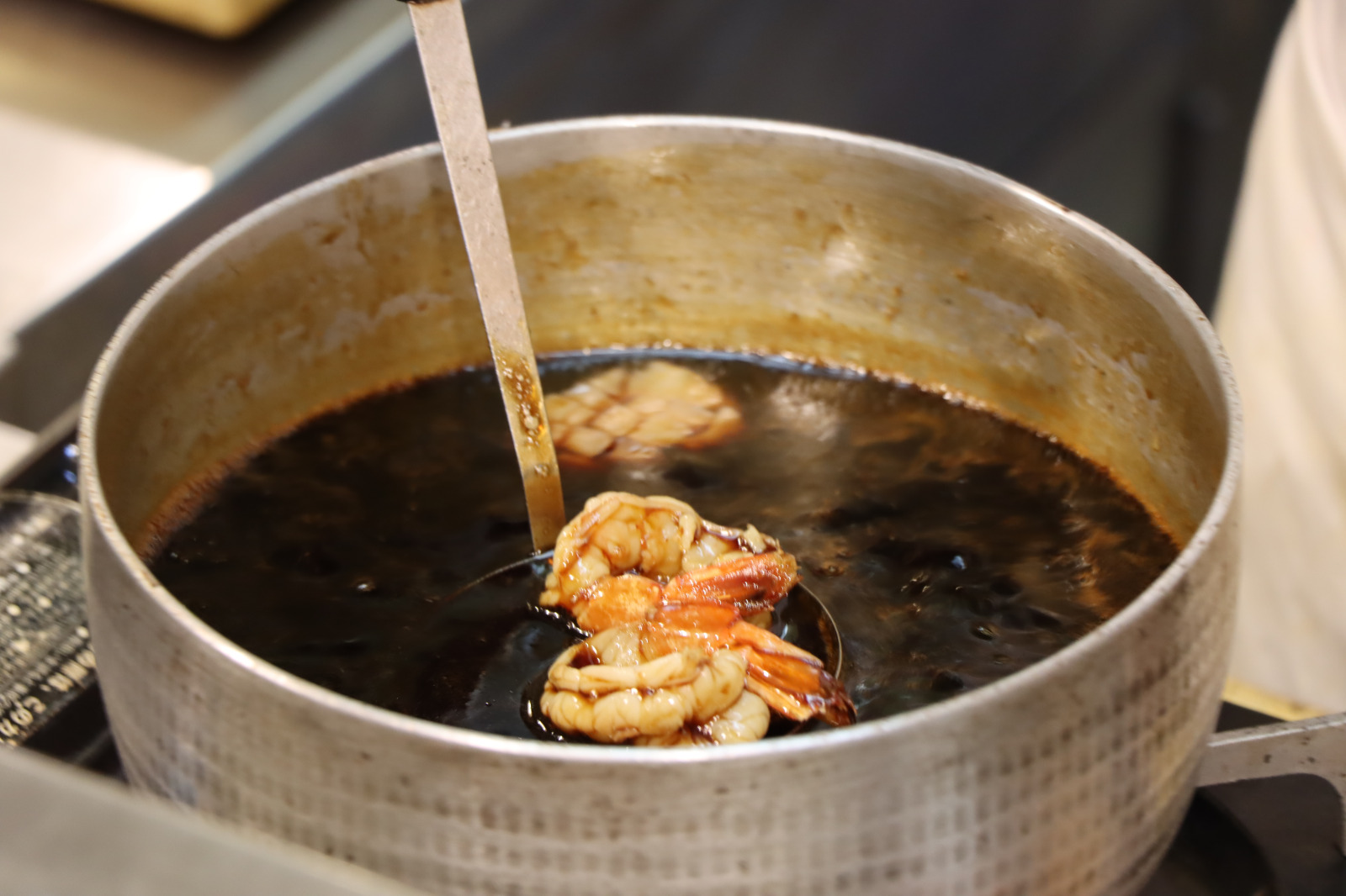 海鮮丼となるネタは、食材ごとに煮る時間を調整。