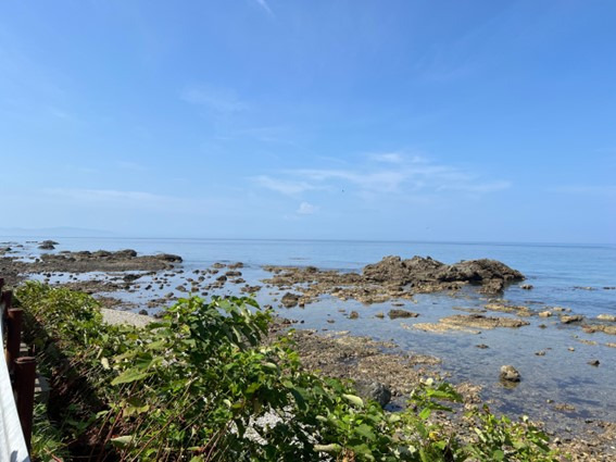 道の反対側の海があり、取材時にはウニの殻が発見できました。