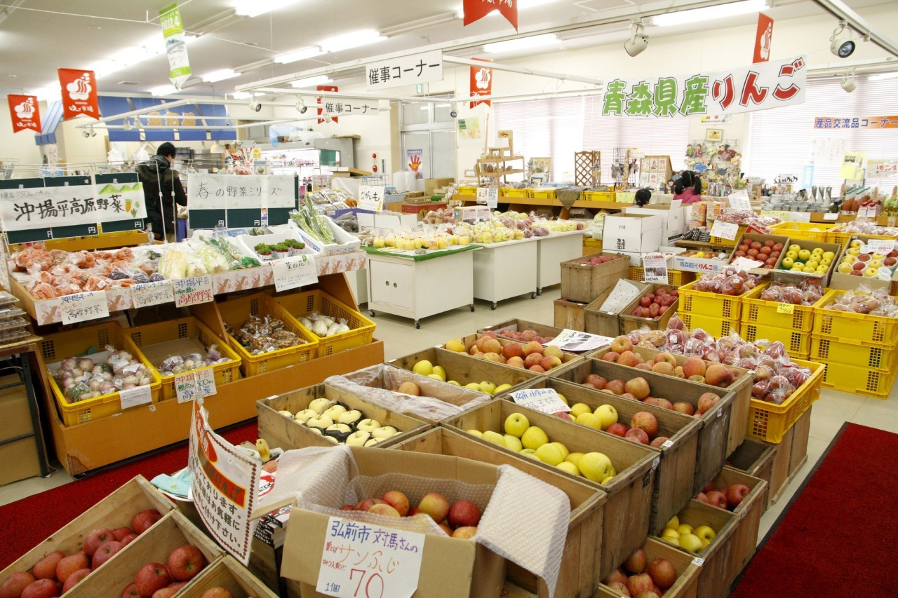 焼きたてのアップルパイのいい匂いに惹かれて入ると、1階には青森の美味しそうなおみやげがいっぱい!地酒からスイーツまで、地元の名産品・特産品がずらり。季節によっては新鮮なリンゴもどっさり売っています。