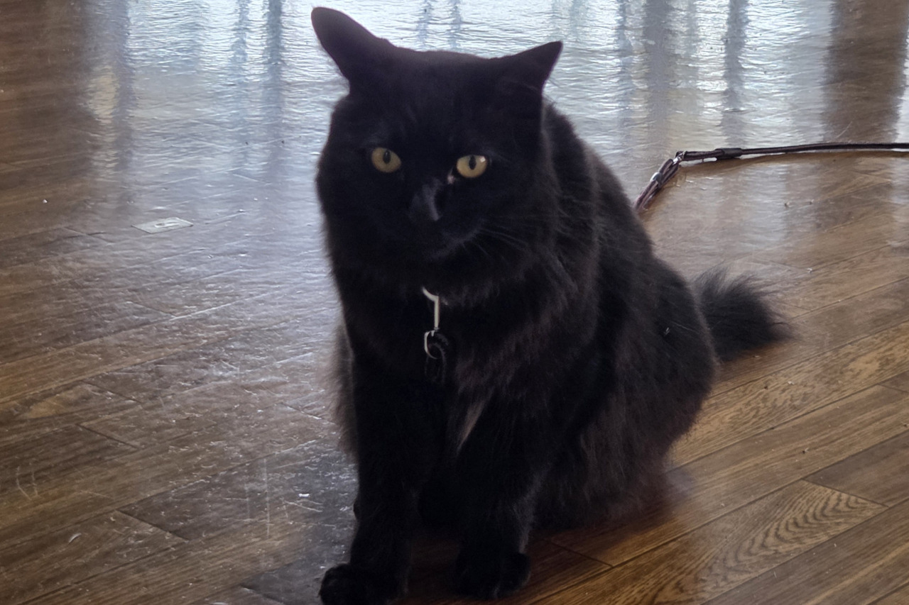旅のスタートは朝風呂から。こちらの温泉は、ロビーで看板猫のくーがお出迎えしてくれます。