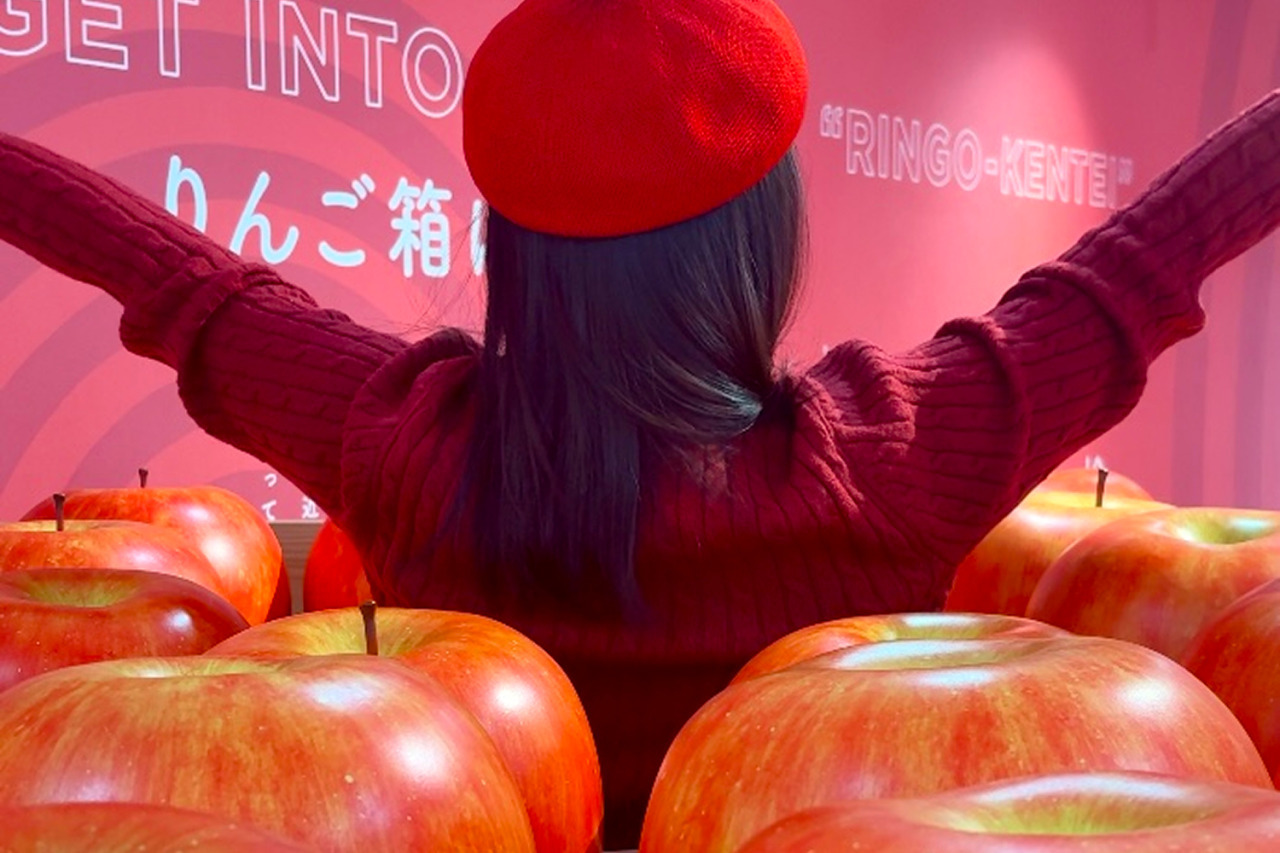 ふじ誕生の地でりんごに変身