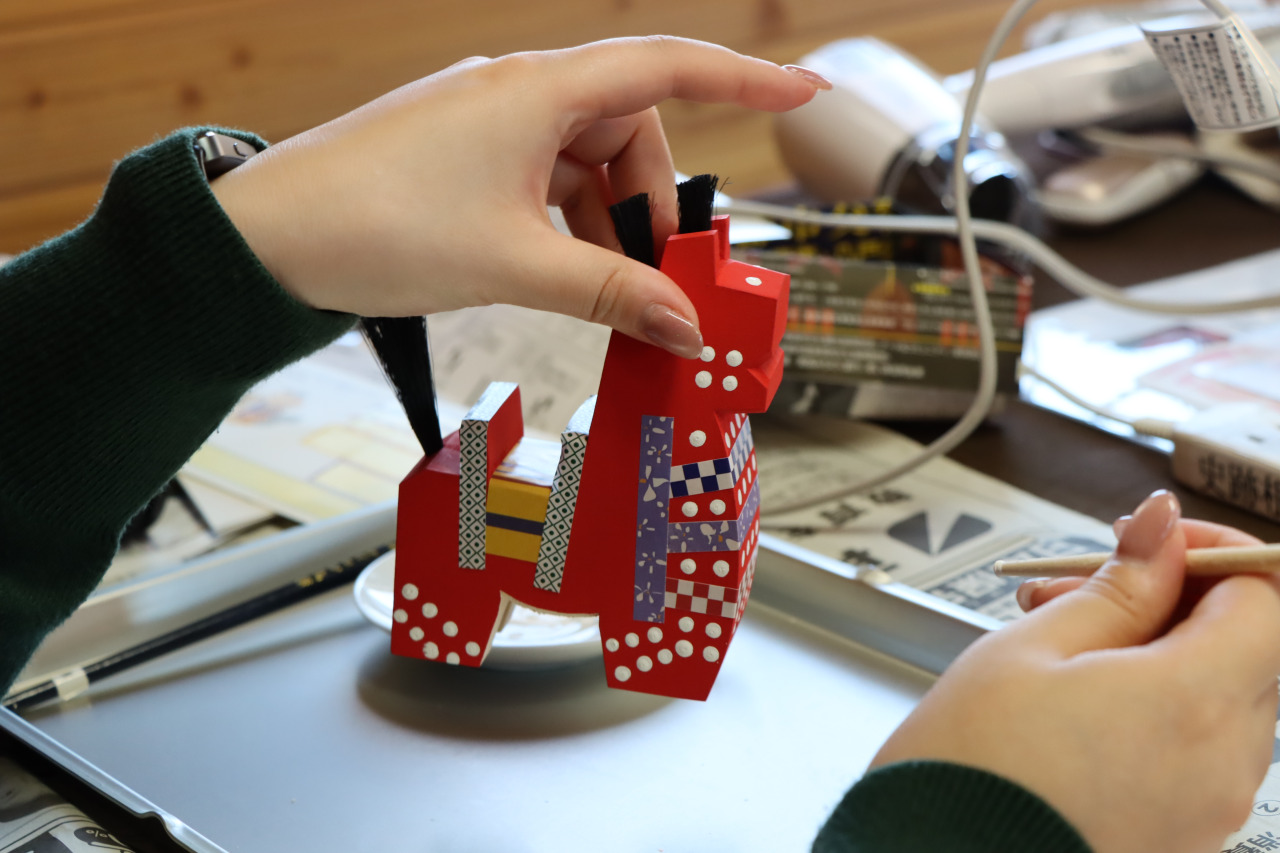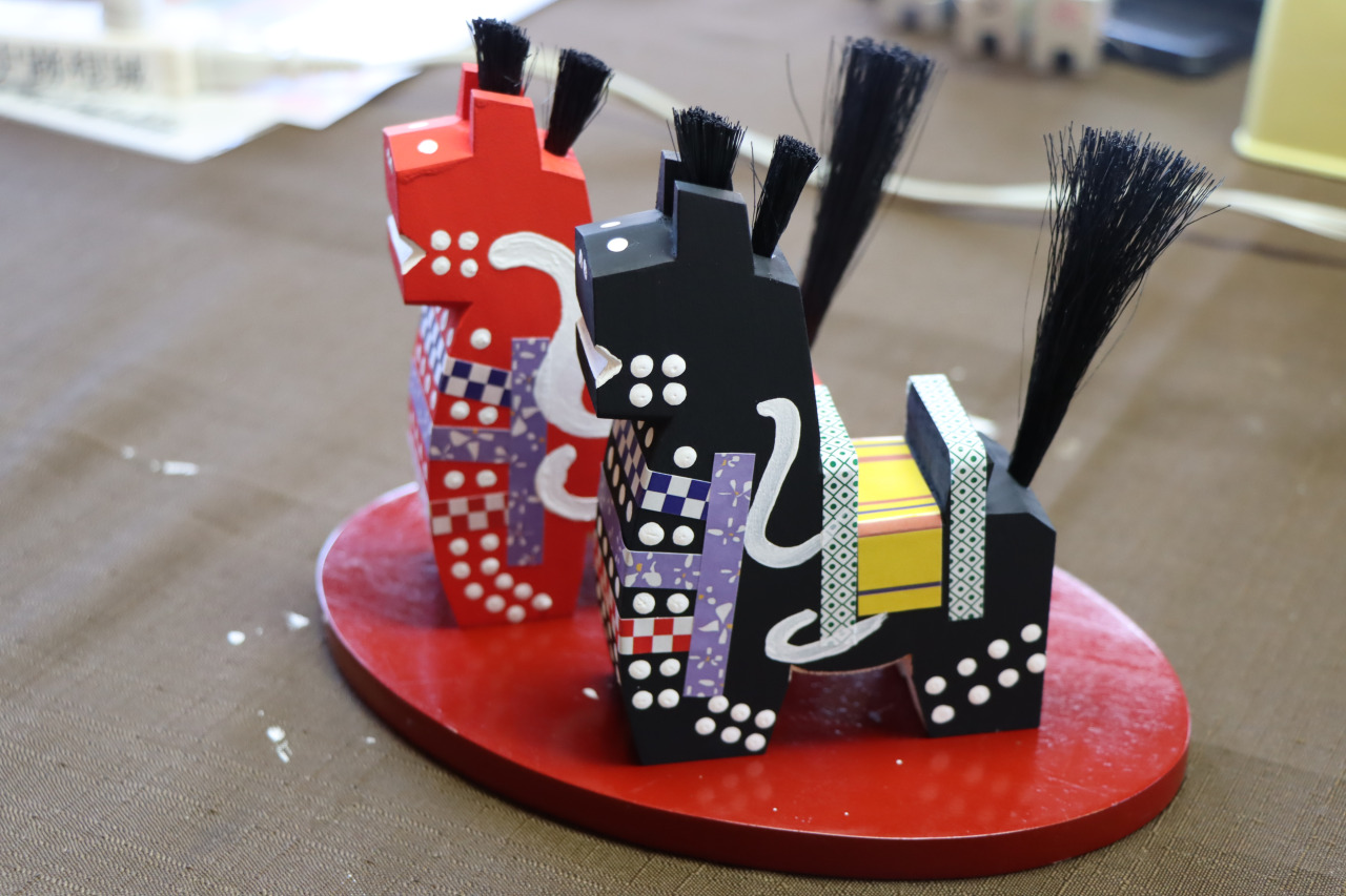 赤または黒の馬に伝統的な模様を施す「クラシックコース」と、白い馬にラインストーンやカラーペンで自由に装飾する「アレンジデココース」。