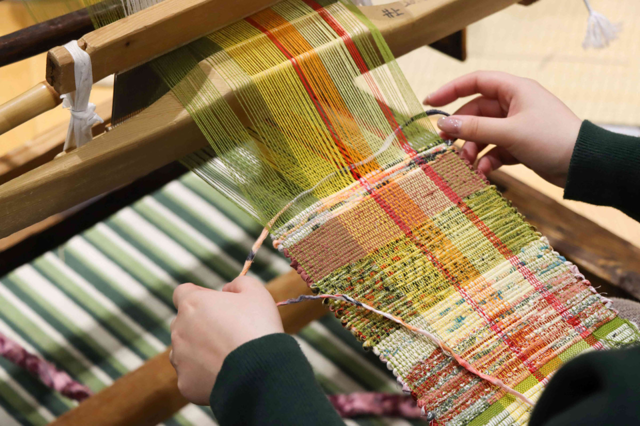 はっち4階にある工房「澄」では、南部裂織体験ができます。
