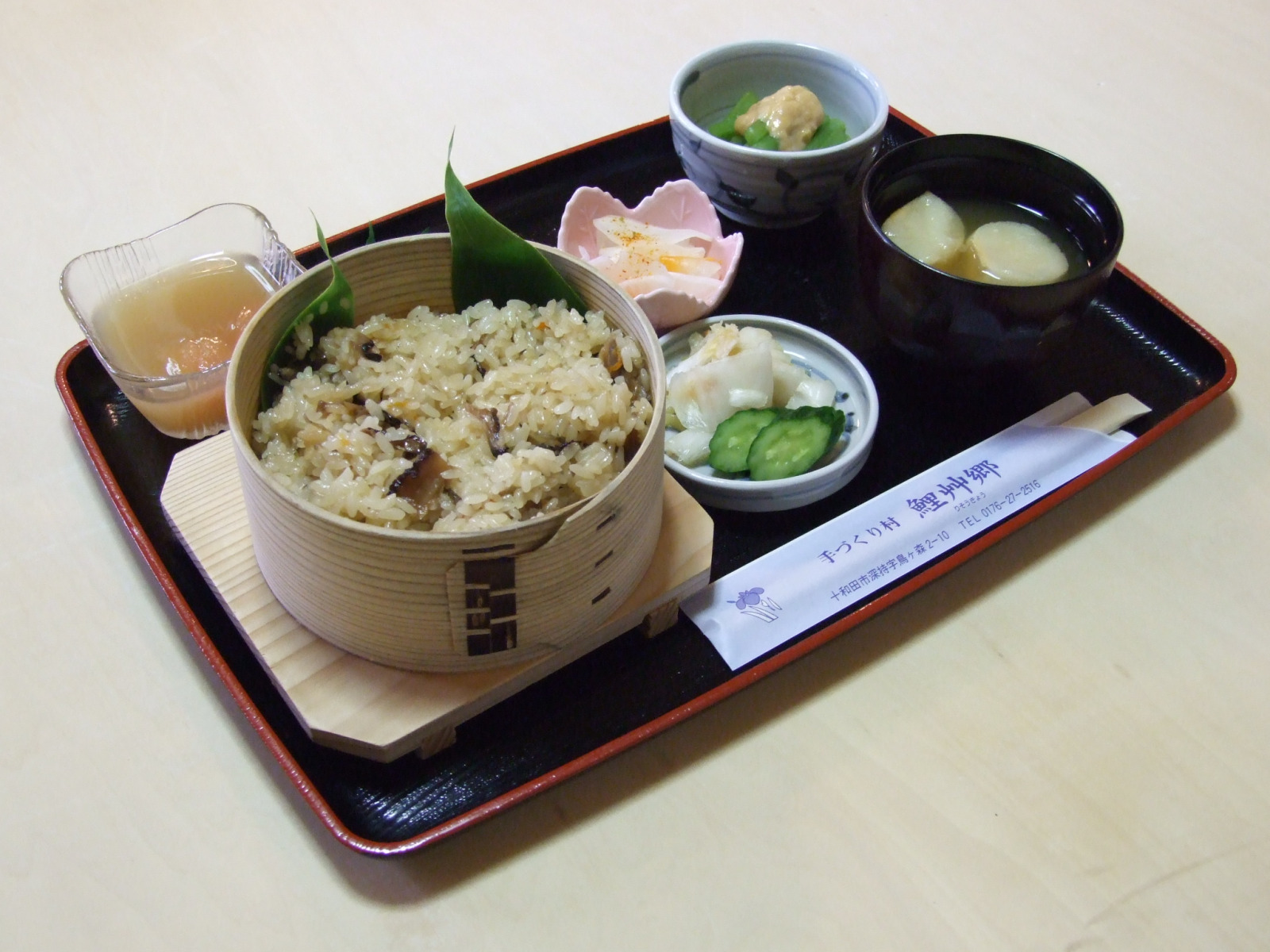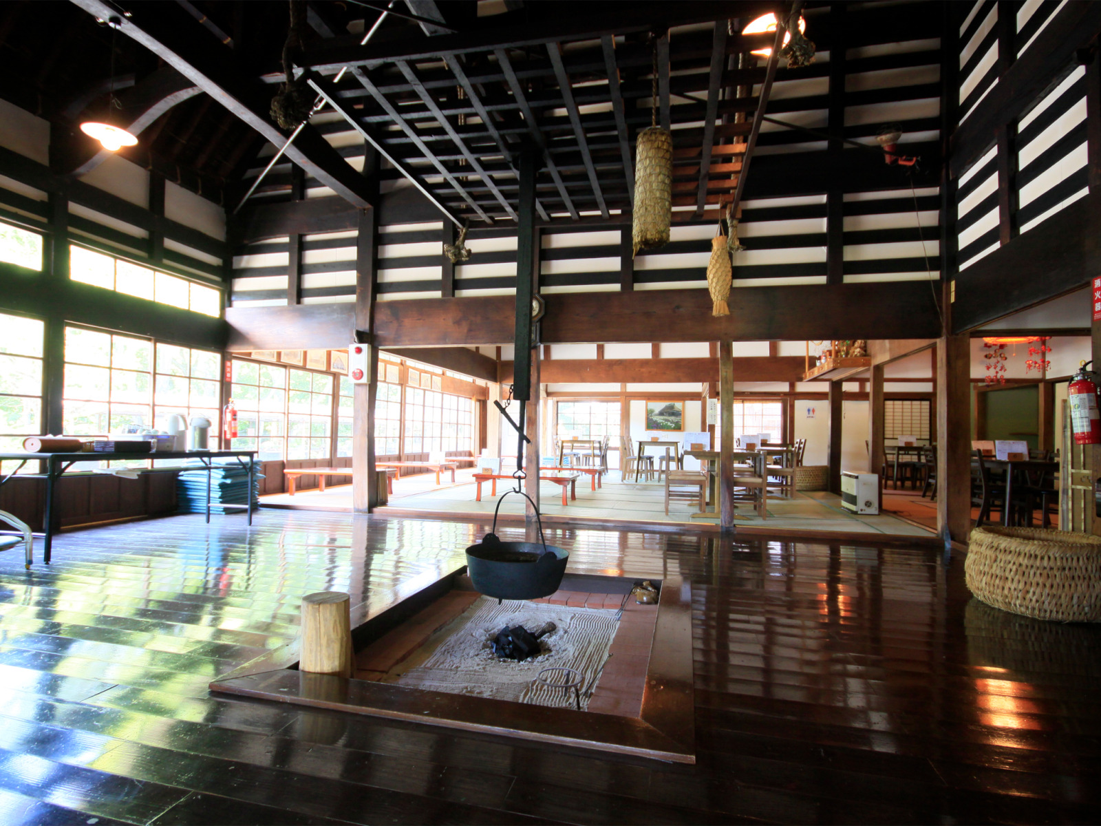 리소쿄에는 가야부키 지붕이 인상적인 전통 가옥이 있습니다. 20세기 초에 세워진 이 건축물은 부지 안에 이축하여 복원한 것으로, 현재 레스토랑으로 운영되고 있습니다. 수제 소바와 사전 예약이 필요한 ‘왓파’라고 하는 원형 나무 상자에 지은 토리메시(닭고기 영양밥), 수제 블루베리 아이스크림 등을 맛보실 수 있습니다.