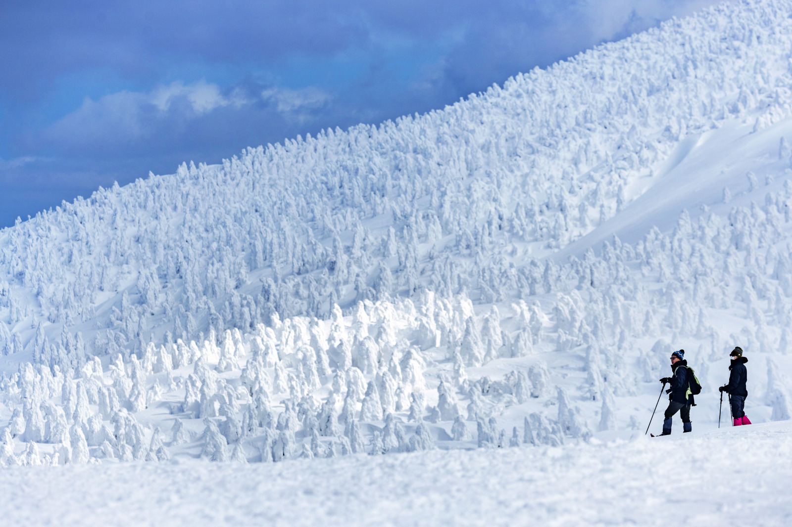 최상급의 파우더스노가 높이 쌓이기로 유명한 아오모리현 핫코다산은 전 세계 스키어와 스노보더를 매료시키는 명소입니다. 하지만 겨울 핫코다산의 매력은 그뿐만이 아닙니다. 핫코다 스키장에서는 강풍이 운반해 온 물방울이 상록수와 부딪혀 얼어붙으며 ‘스노 몬스터’라 불리는 독특한 형상을 만들어 냅니다. 이 자연 조형물 사이를 스키나 스노보드를 타고 활주하면, 가슴이 뻥 뚫리는 상쾌함을 느낄 수 있습니다. 또한 핫코다 로프웨이의 케이블카를 타면 하늘 위에서 ‘스노 몬스터’를 감상할 수도 있습니다.