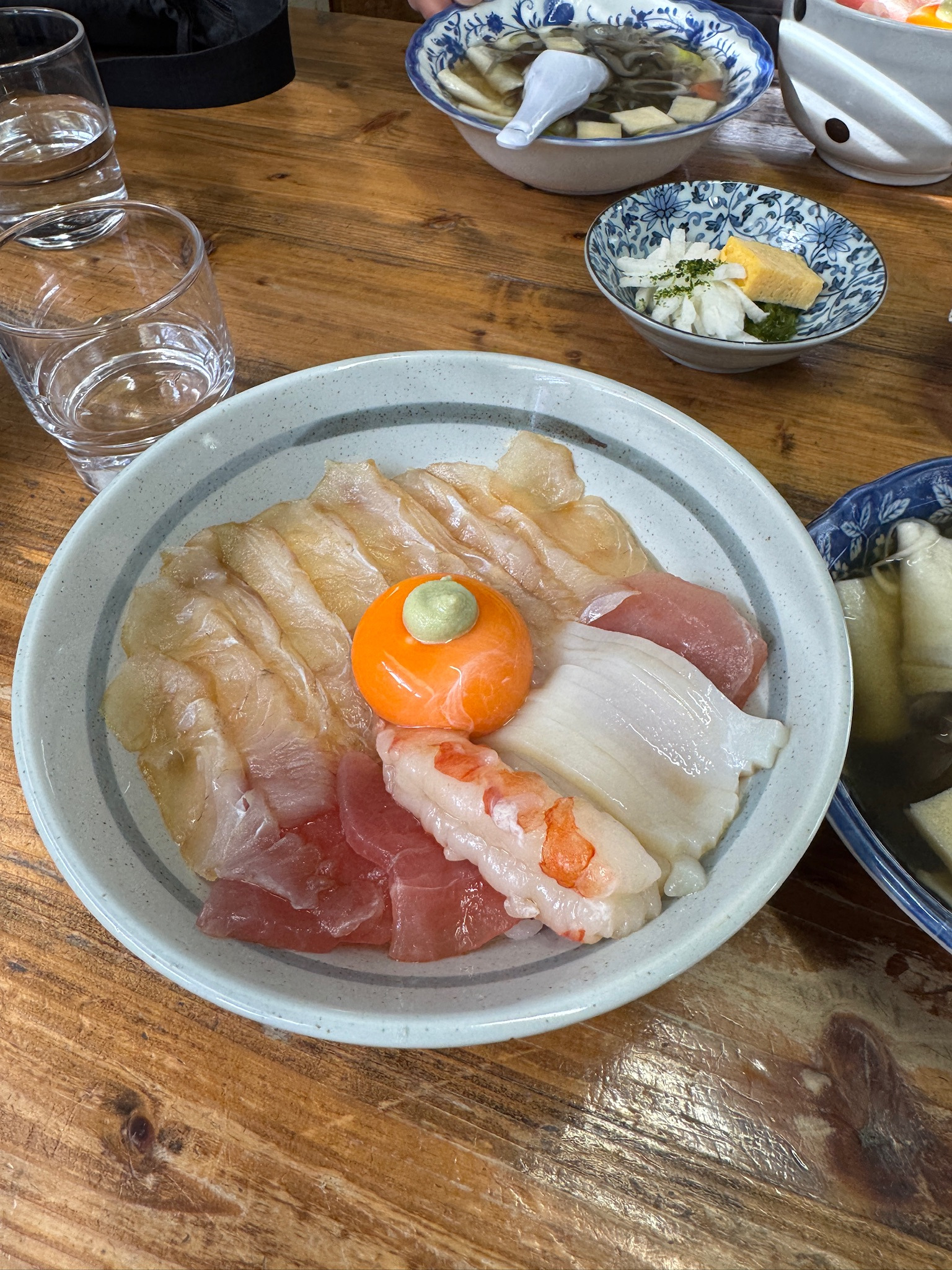 즈케동이 나오자 입가에 절로 미소가 번졌다. 간장 소스에 살짝 절인 회는 밥이 보이지 않을 만큼 풍성하게 올려져 있고, 그 위에 계란 노른자와 와사비가 화룡점정처럼 살포시 얹혀 있다. 과하지 않도록 절묘하게 간이 되어 있어 생선회 본연의 맛을 살려주고, 식사 중반에는 노른자와 와사비를 조금씩 비벼 맛의 변화를 주며 즐길 수 있다. 한 그릇 안에서 다양한 맛을 느낄 수 있는 멋진 한 그릇이었다. 점심 시간이나 주말에는 대기줄이 길어지므로 여유 있게 방문하는 것을 추천한다.