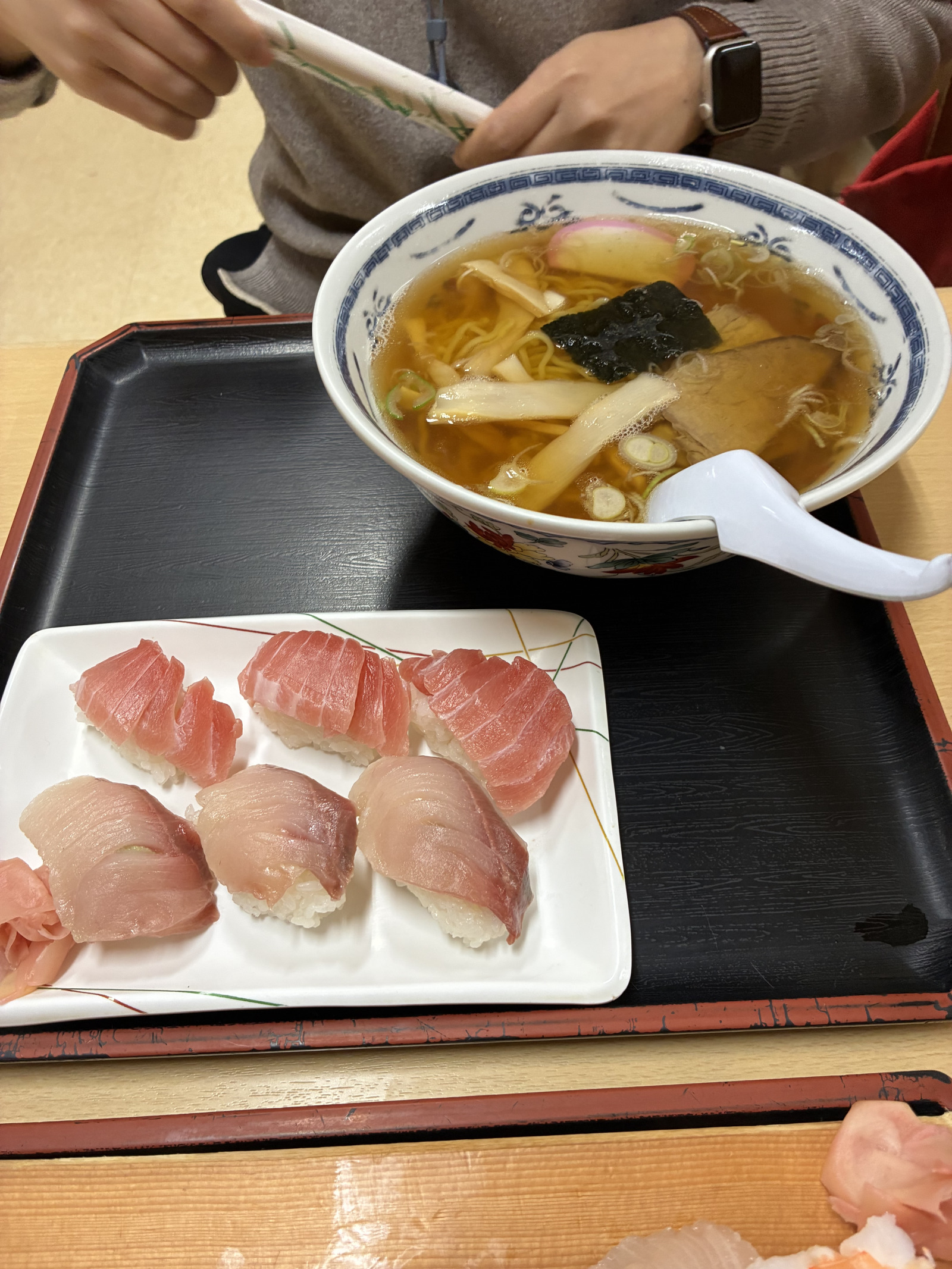 저녁 6시가 넘으면 마켓의 일부는 문을 닫지만 ‘구리야 스타디움’이라 불리는 식당가 구역에서는 저녁 식사가 가능하다. 현지에서만 맛볼 수 있는 라멘을 찾는 것이 소소한 취미라 메뉴판을 유심히 살폈다. 라멘과 스시가 함께 구성된 세트 메뉴를 보고는 잠시 고개를 갸웃했지만, ‘맛있는 것 + 맛있는 것’이라는 단순한 조합이 오히려 흥미를 자극했다.