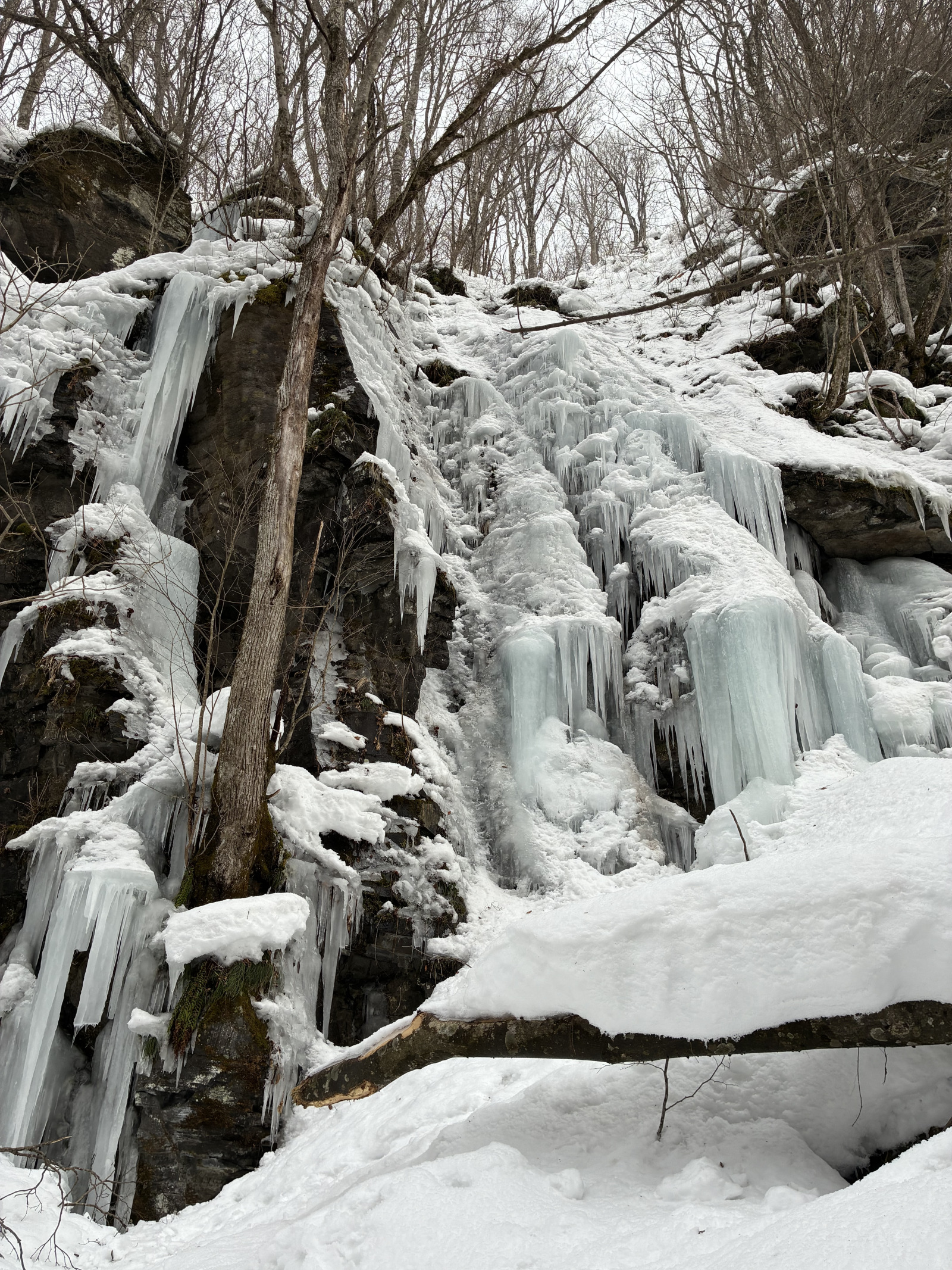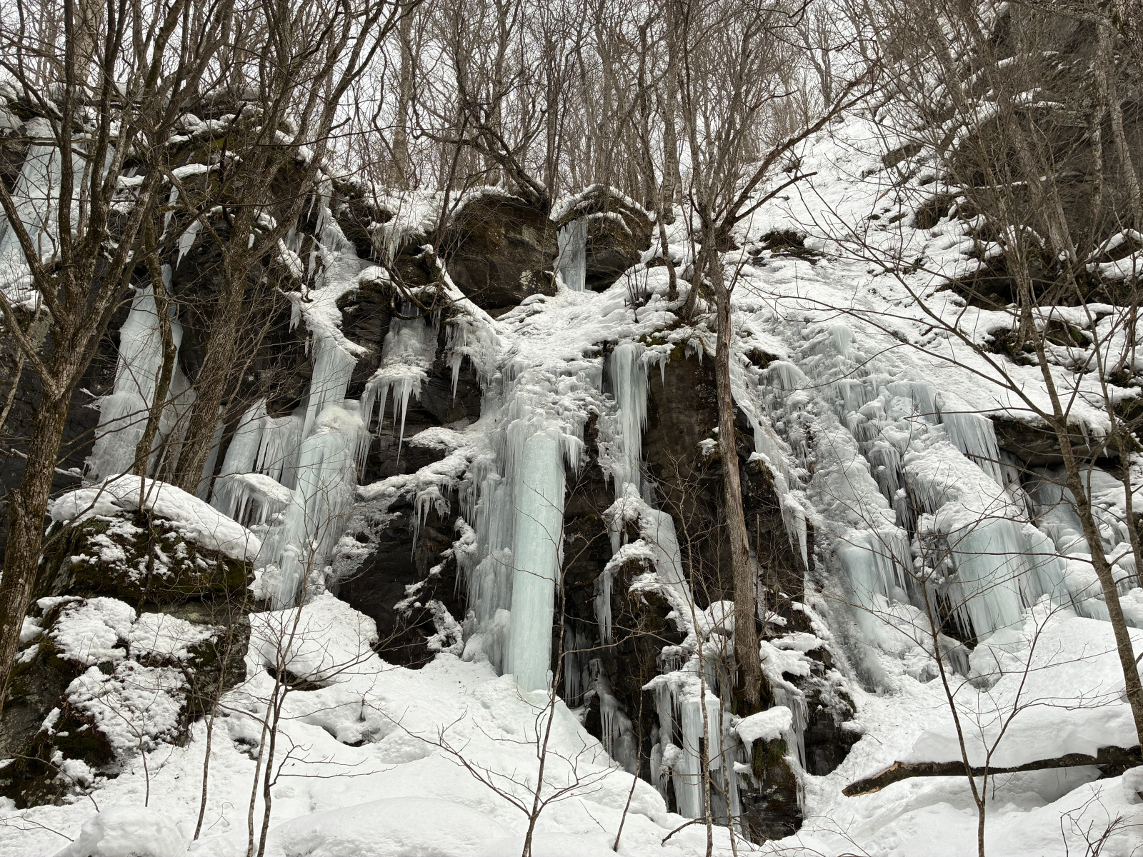 도와다호 이동은 사전에 예약한 택시를 이용했다. 아오모리 토박이 운전사 덕분에 도와다호에서 오이라세 계류로 내려오는 길에 얼음 폭포를 잠시 둘러볼 수 있었다. 급류와 폭포, 울창한 숲으로 이루어진 오이라세 계류는 겨울이 되면 폭포가 그대로 얼어붙어 장관을 이룬다. 거대한 물줄기가 시간이 멈춘 듯 얼어붙은 모습은 마치 샹들리에처럼 신비로웠다. 자연의 위대함을 다시 한 번 실감하는 순간이었다.