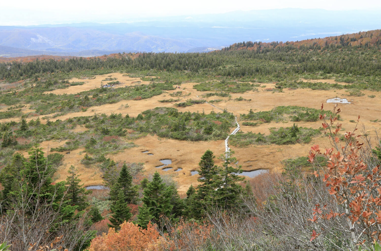 毛無岱の中央部を縦走する全長約5.8km、約2時間半〜約3時間程度のビギナーでも楽しめる登山道です。