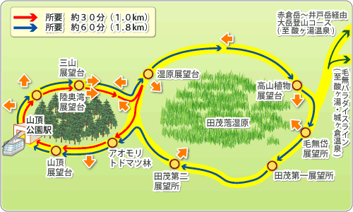 八甲田ロープウェー山頂公園駅を起点とした、約1.0kmを約30分で散策できるコースです。