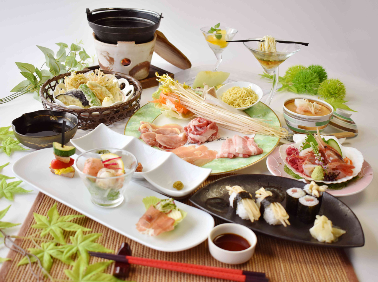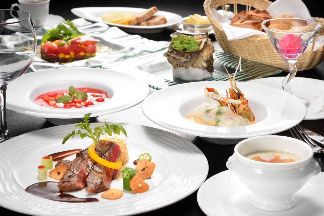 館内の食事では、旬の地元食材を使った料理と絶景を堪能!