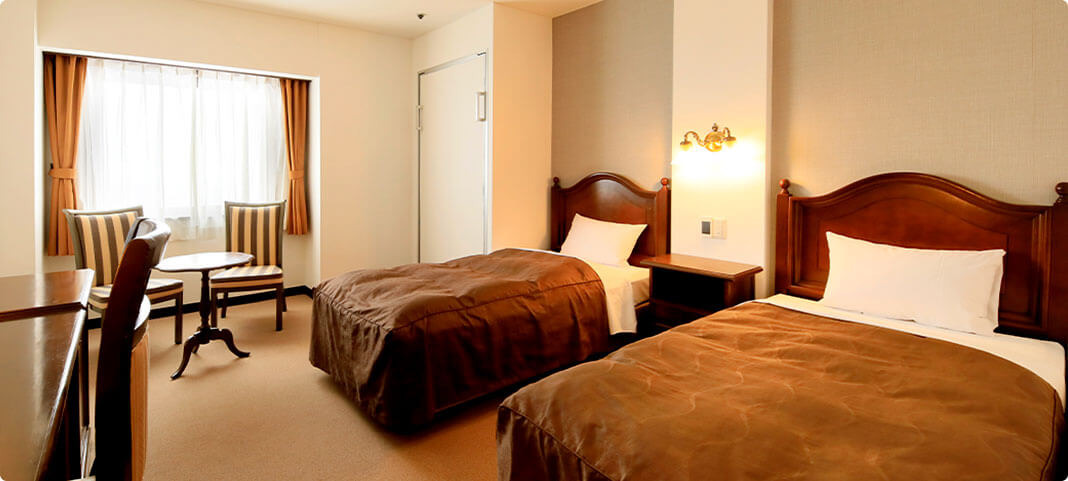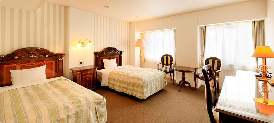客室は、アンティークなルームキーやヨーロッパ直輸入の調度品が彩るレトロで優雅な空間。日常を離れ、ゆったりとした時間を過ごすことができます。