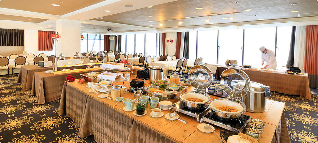 朝食会場となる最上階「ステラ」では、晴れた日には岩木山や世界遺産の白神山地、八甲田連峰を望むことができます。