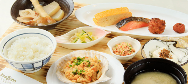 雄大な景色とともに、津軽の味覚を取り入れた和洋ブッフェが用意されています。