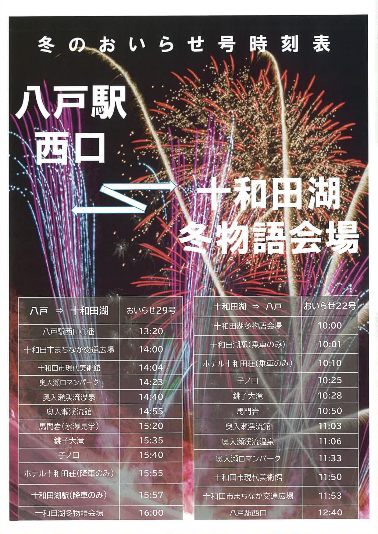 ※八戸駅西口発~十和田市~冬物語会場行。