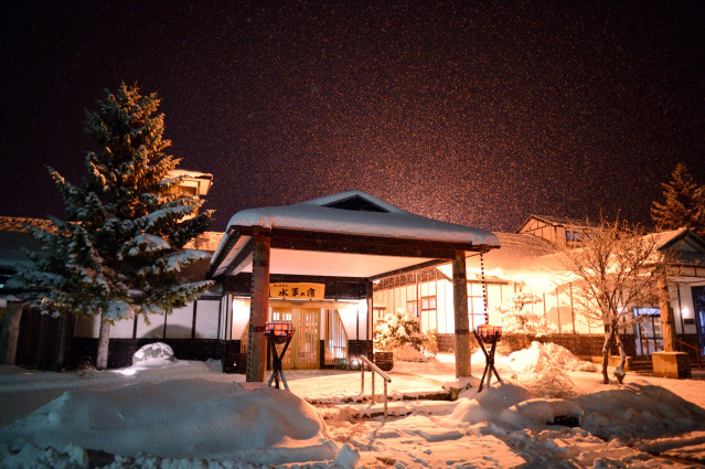 歴史ロマンと木の温もりを感じる和風旅館「鰺ヶ沢温泉 水軍の宿」は入った瞬間にホッとするようなあたたかさがあります。地元の旬の食材をふんだんに使った料理はどれも絶品。鰺ヶ沢に居住していたとされる安東水軍を思わせる船型の露天風呂には、空気が澄んでいる寒い季節だからこそ輝く満点の星空が広がっています。日常離れしたゆったりと流れる癒しの時間をご堪能ください。