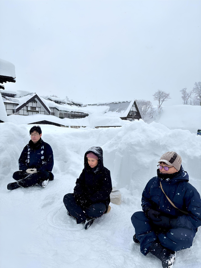ときには厳しい雪も降る冬の屋外で、凛とした空気に包まれながら坐禅体験。