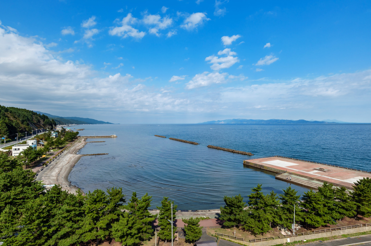 海抜約40mの展望所からは陸奥湾や下北半島、八甲田連峰、遠く北海道まで望む雄大な景色が広がります。