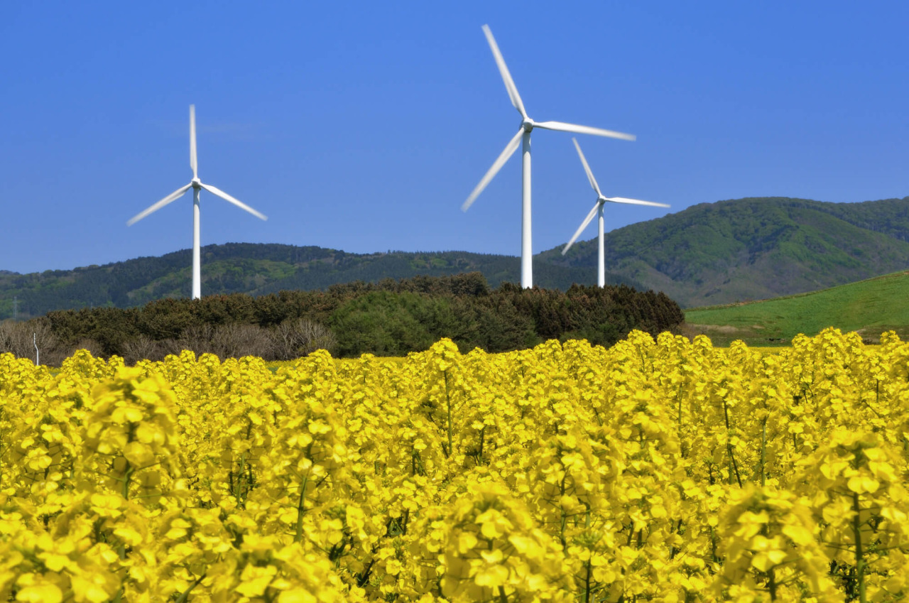 春には50ヘクタールに広がる菜の花畑が絶景を作り、観光客にも大人気。