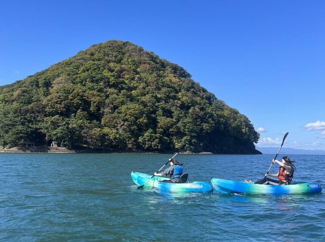 カヤックも自分の力で海上を進むアクティビティ。小船に乗り込み、遠い水平線を眺めたり、いつもより近い場所から海の中をのぞいたり、陸上とは異なる感覚で海を体感できます。