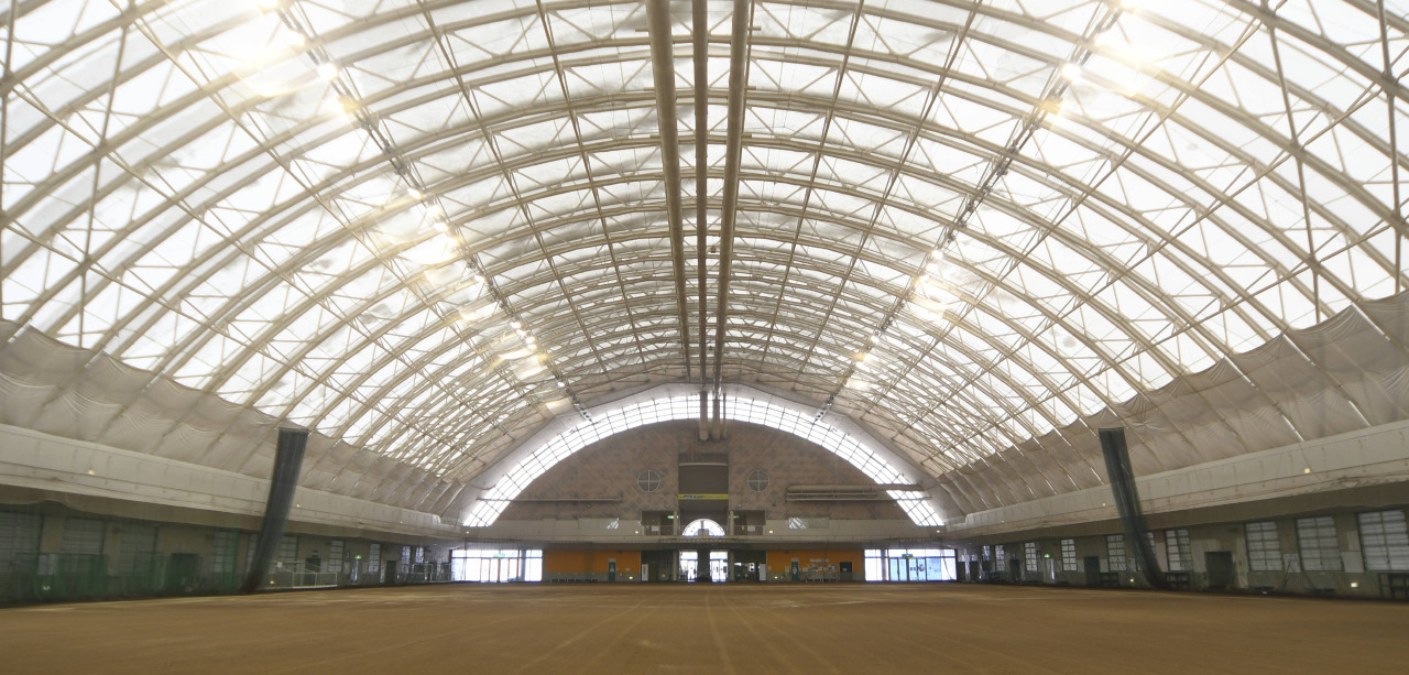 室内ながら土のグラウンドを備え、野球やサッカー、ソフトボールなどを一年を通してプレー可能。