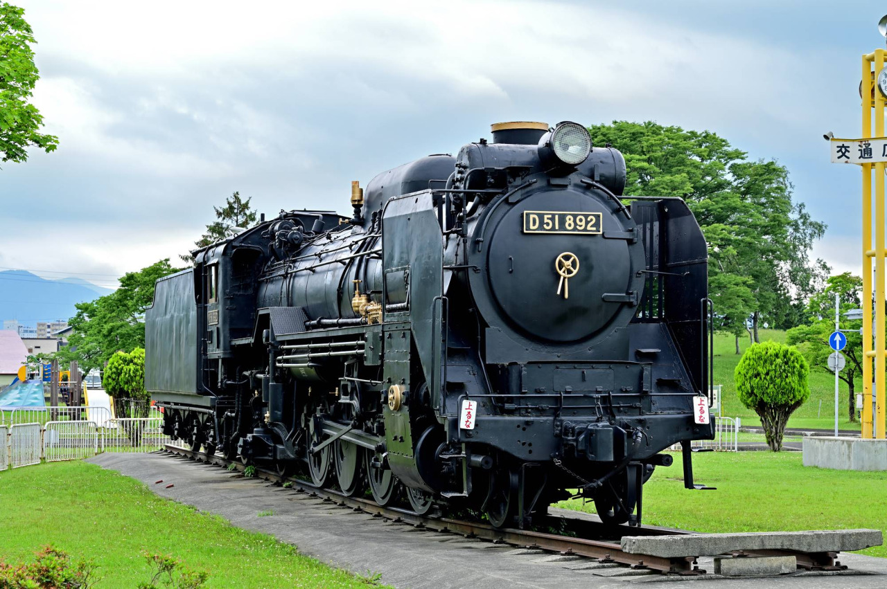 広場内には、昭和19年に作られ、弘前市を中心に約190万キロを走った「D51892蒸気機関車(通称:デコイチ)」が展示されており、車体の中に入っての見学も可能です!