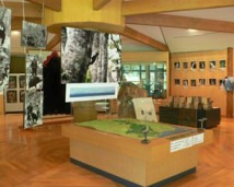 館内には、白神山地に生息する動物たちの迫力ある剥製や、四季折々の景色を捉えた写真パネルが展示されています。
