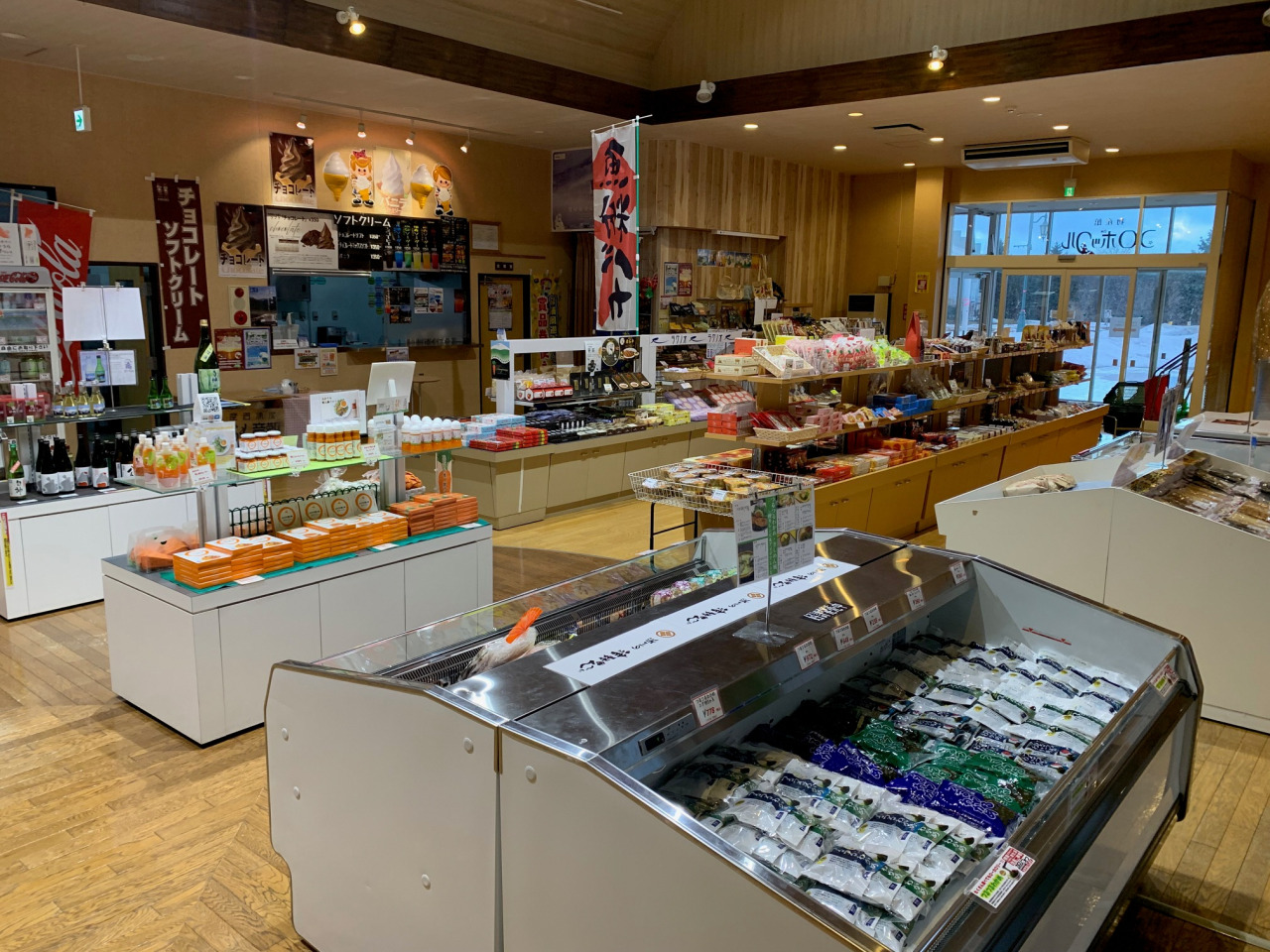深浦町の新鮮な特産品やお土産、季節限定のスイーツが並ぶ物産館です。