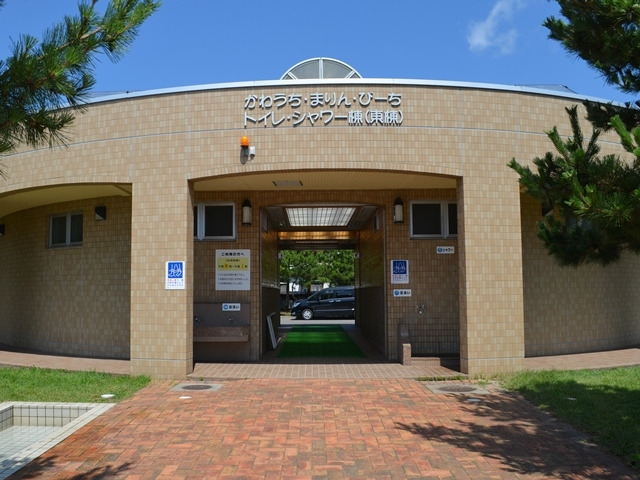 120台収容の駐車場やシャワー棟、トイレ、コインロッカーなどの設備も充実。夏は多くの人で賑わいます。