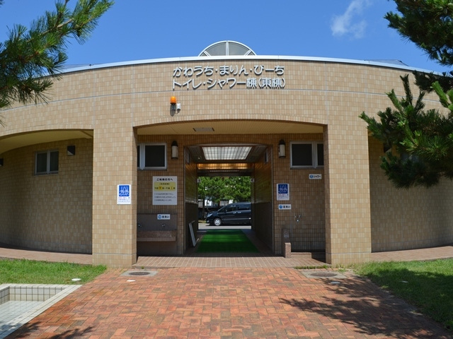 下北半島のほぼ中央、むつ市川内町にある「かわうち・まりん・びーち」は、波が穏やかな陸奥湾に面した、家族連れに人気の海水浴場です。
