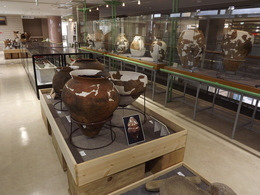 館内には、市内の遺跡から出土した土器や石器をはじめ、かつての人々の暮らしを支えた農機具や生活用具など、数々の歴史資料が展示されています。