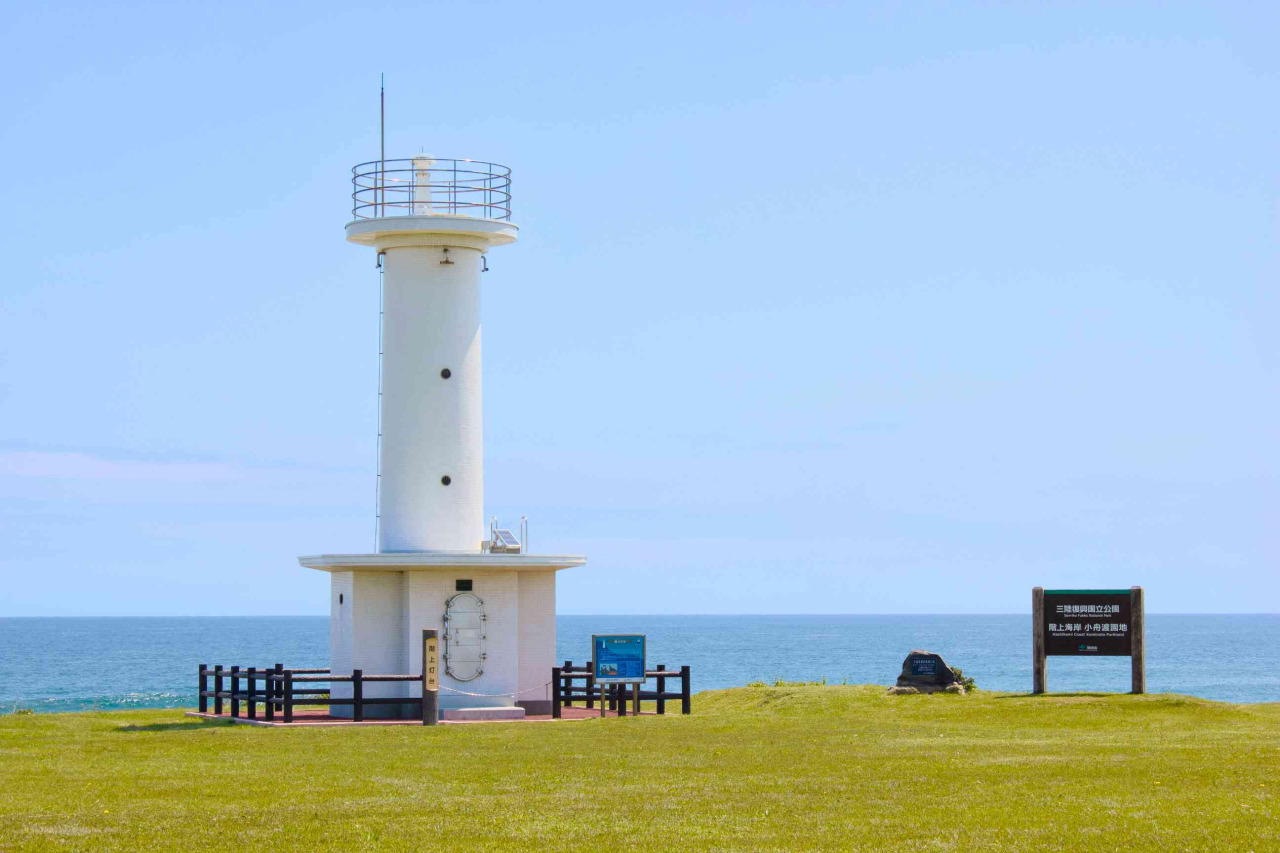 階上町小舟渡に建つ階上灯台は、白色円形の灯台で、塔高11メートル、海面からの高さは22メートルを誇ります。