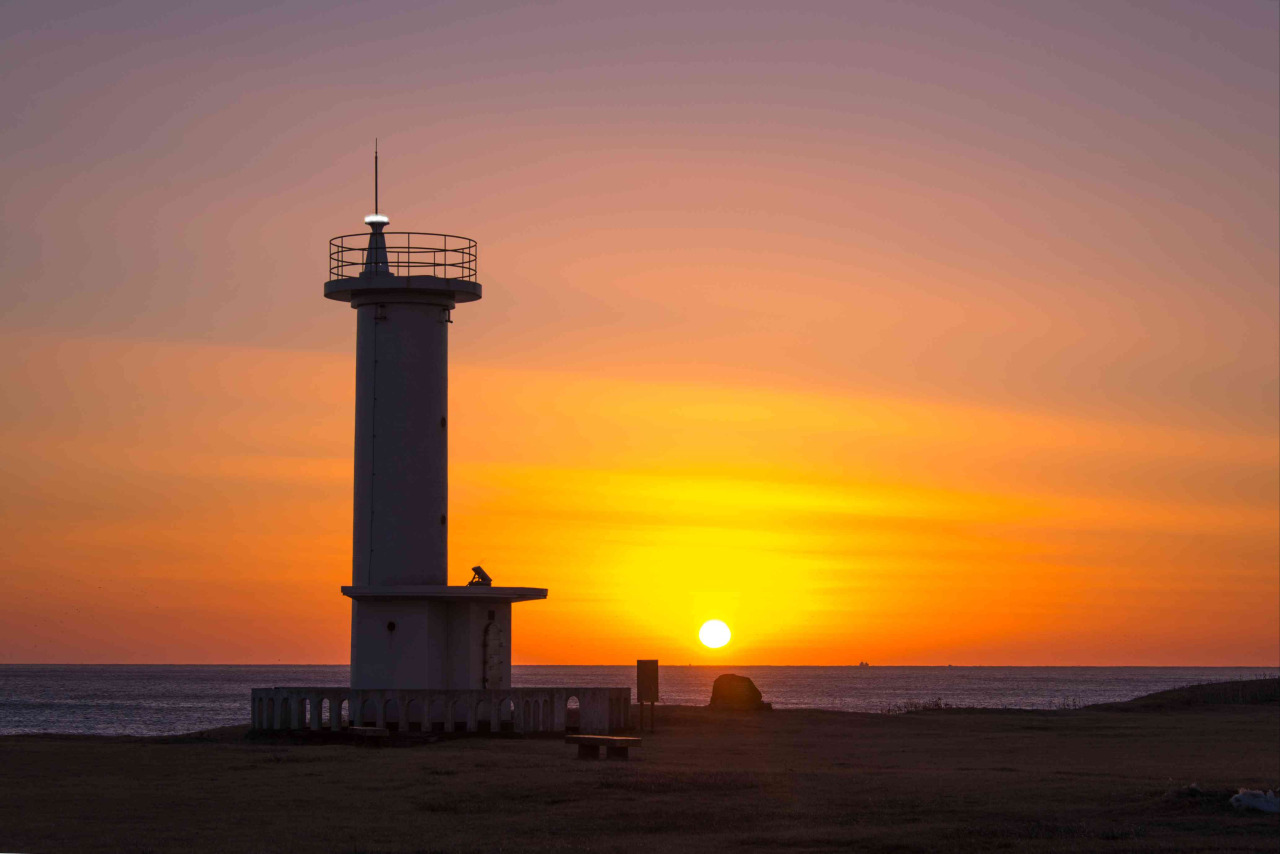 青森県内最東南端に位置し、県内で最も早く朝日が昇る場所として知られ、水平線から昇る朝日は訪れる人を魅了する絶景です。