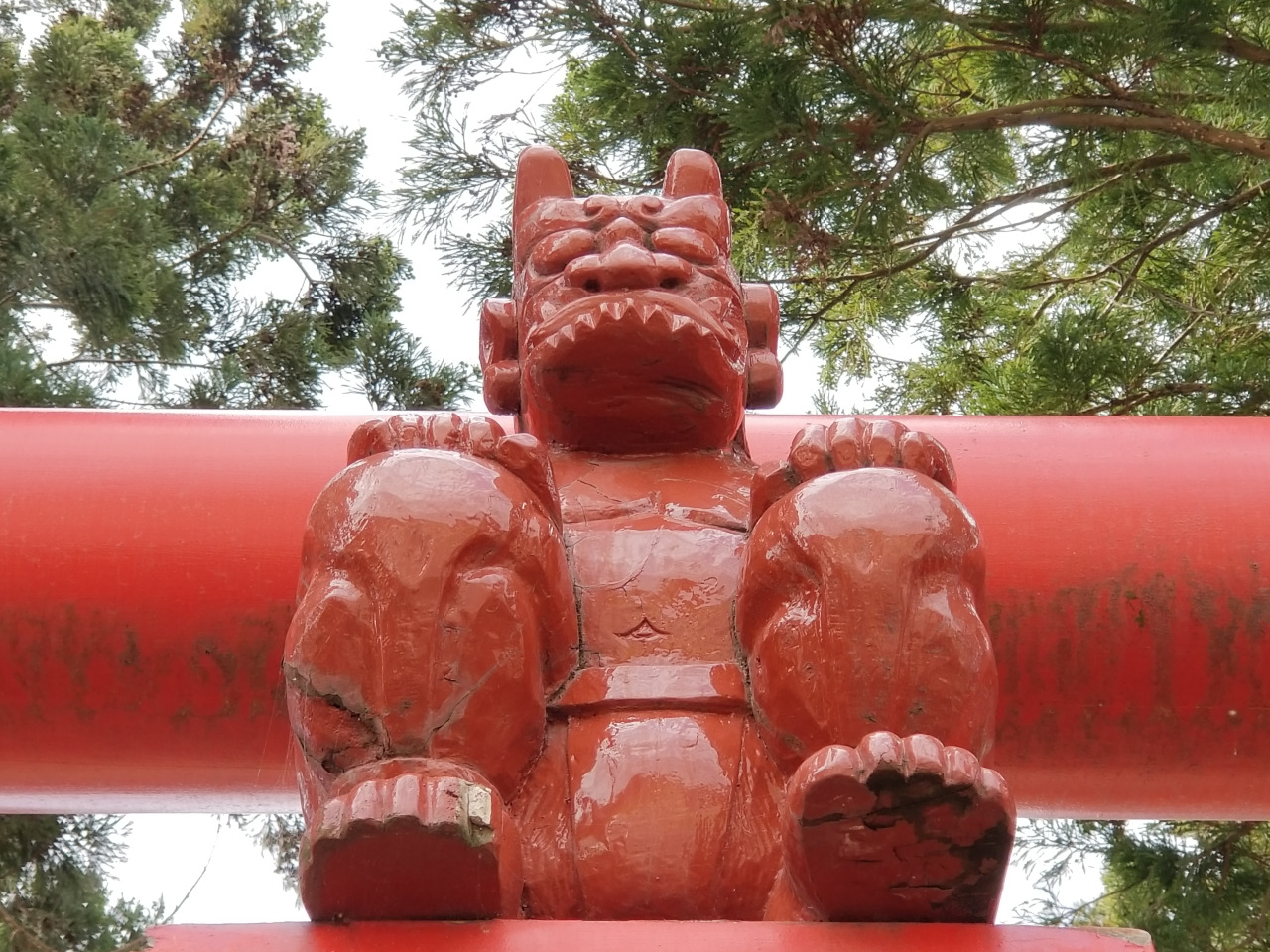 弘前市種市に鎮座する熊野宮は、鳥居の上に座るマッチョな赤鬼コに出会えることで知られる神社です。
