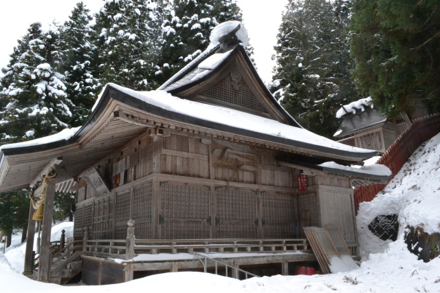 境内には拝殿のほか、木製の馬が奉納された祠があり、地域の人々の祈りの歴史を感じられます。