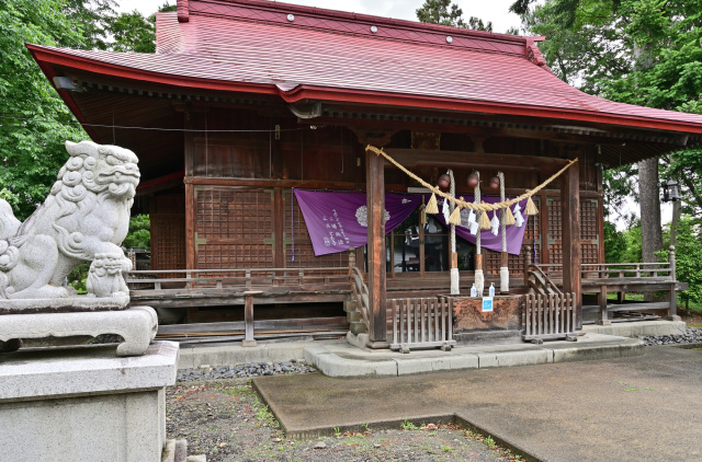 境内には、寛文四年(1664年)の銘を持つ石造狛犬があり、弘前八幡宮や多賀神社のものとあわせて三対六基が確認されています。